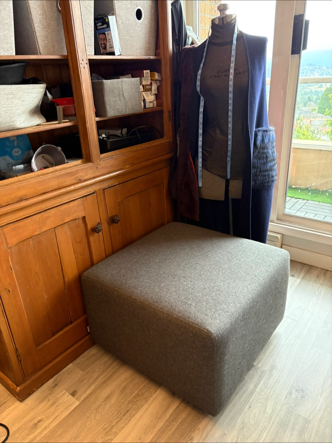 Selling a grey ottoman. It's in great condition and would be a perfect addition to any living space! It's a nice neutral colour that would fit in with any decor. Wool
