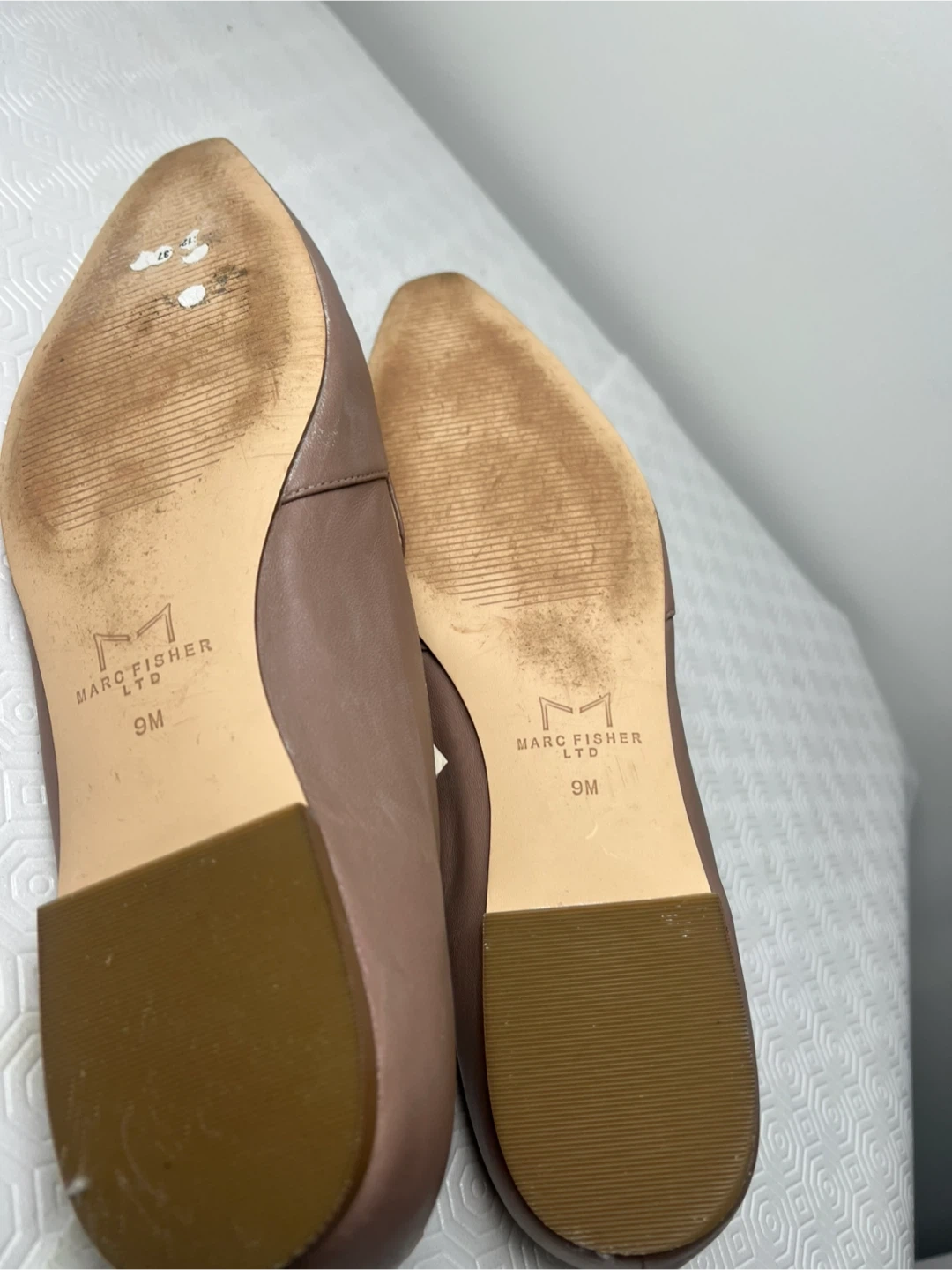 Marc Fisher LTD women's loafers in a tan leather. Size is 9M. They're stylish and comfortable flat shoes.