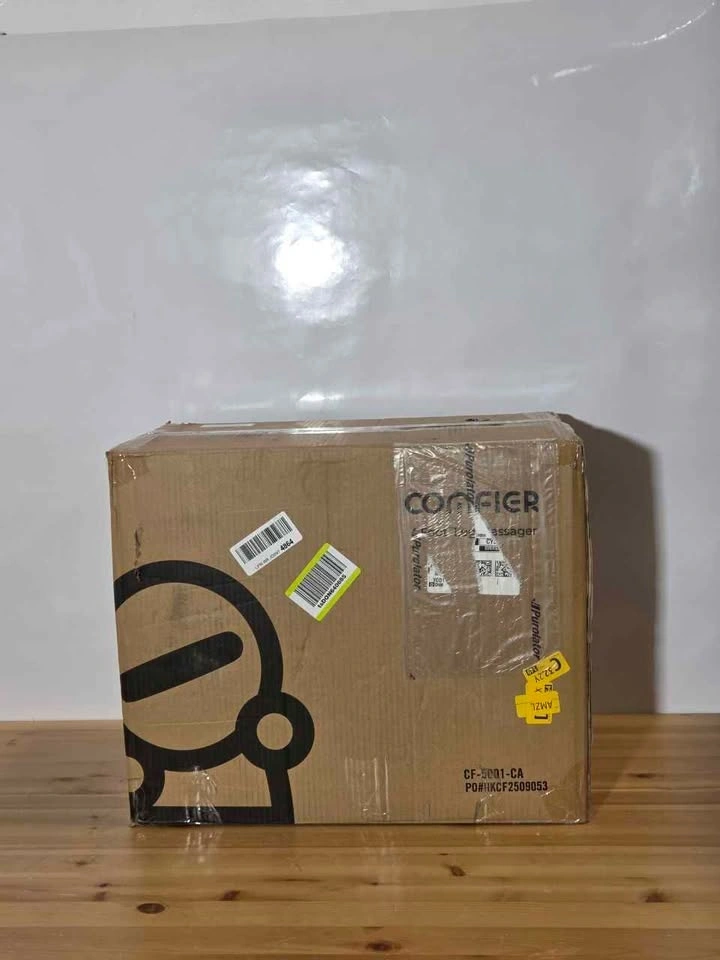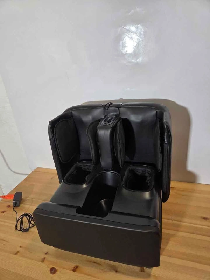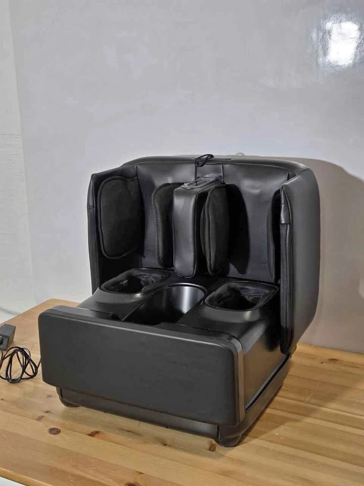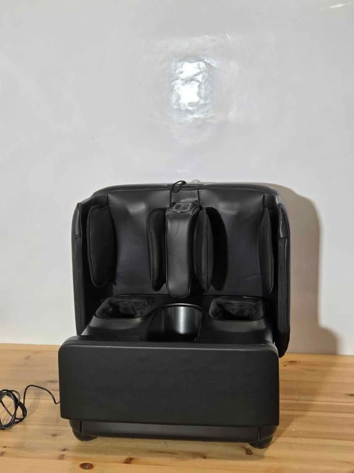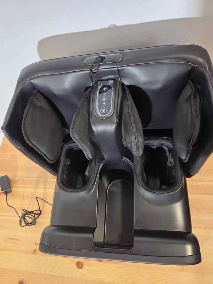 Brand new foot massager with soothing heat and rolling compression. Fits feet up to size 13 inches. Promotes relaxation after long days. Compact design for home or office use. Easy to operate with simple controls. ID:B209