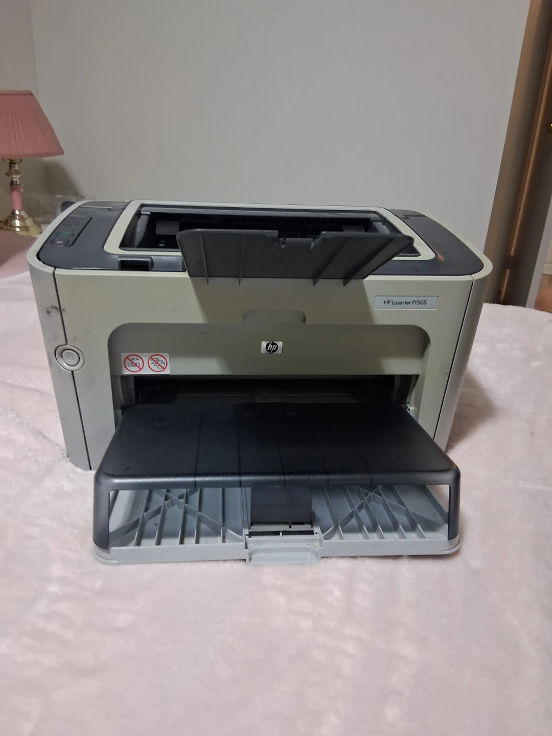 HP LaserJet P1505 laser printer. Black and white printing. It's a compact device for home or small office use. It has a print speed of up to 22 pages per minute.