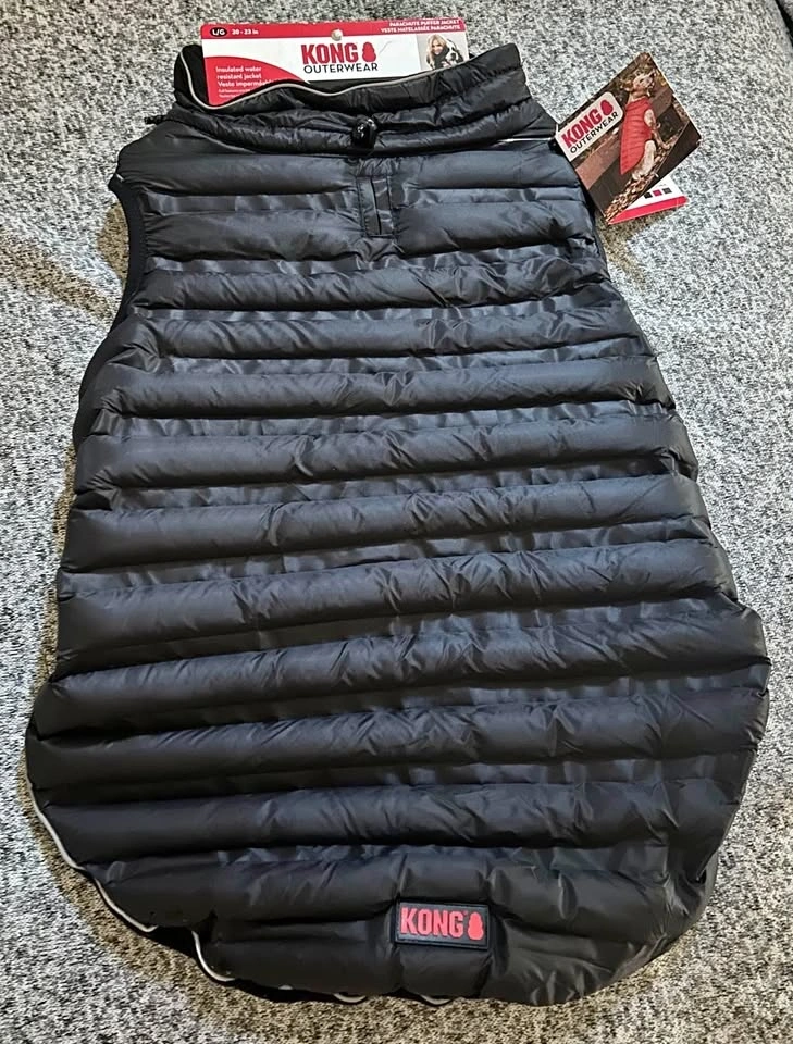 Brand new with tags still on. Kong Vest for Dogs, size Large. Didn't fit my dog, that's why I'm selling. It's very cute and good material, perfect to keep your doggo warm on a cold or rainy day!