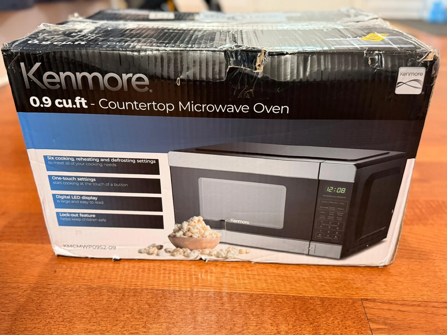This Kenmore microwave oven offers 0.9 cu.ft. of capacity. It features six cooking, reheating, and defrosting settings. The digital LED display is large and easy to read, and it includes a lock-out feature for child safety.