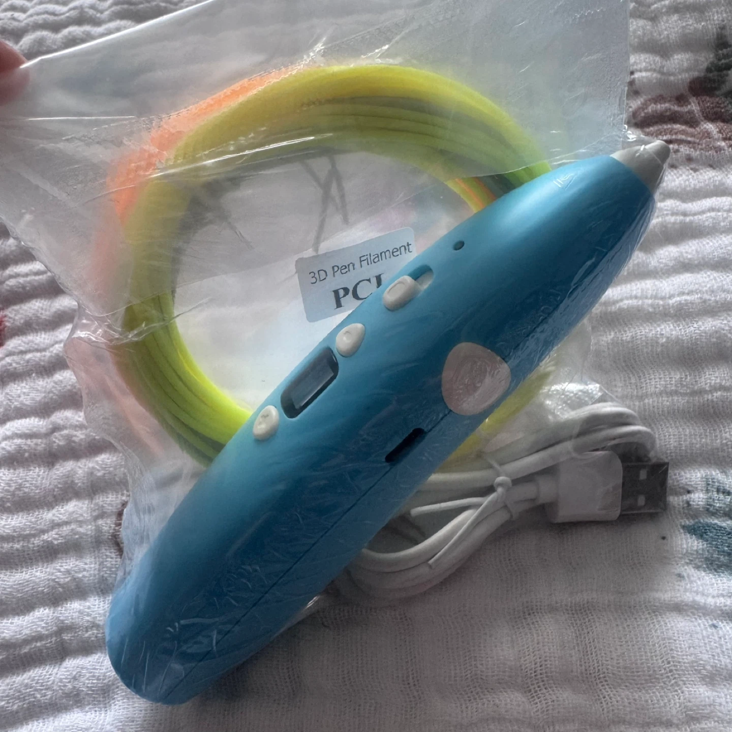 Small blue 3D pen with sample spools of filament included. It comes with a USB charging cable. It's great for creative projects! Brand new, purchased and never used. Open to offers.