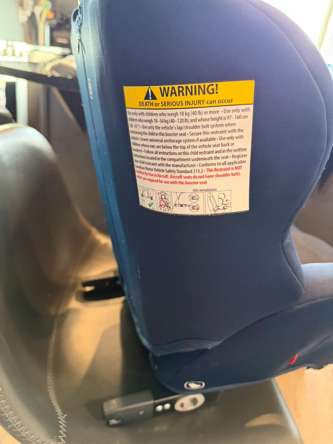 This Diono booster car seat is suitable for children weighing 18 kg (40 lbs) or more. It's designed for use with the vehicle's seat belt and offers adjustable head support. Installation is straightforward with UAS (Universal Anchorage System) compatibility.