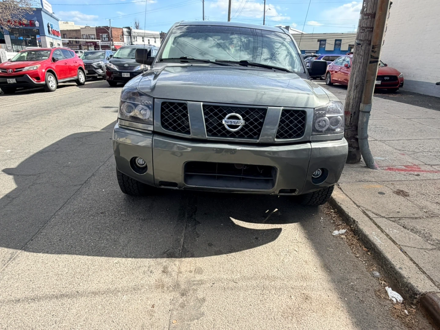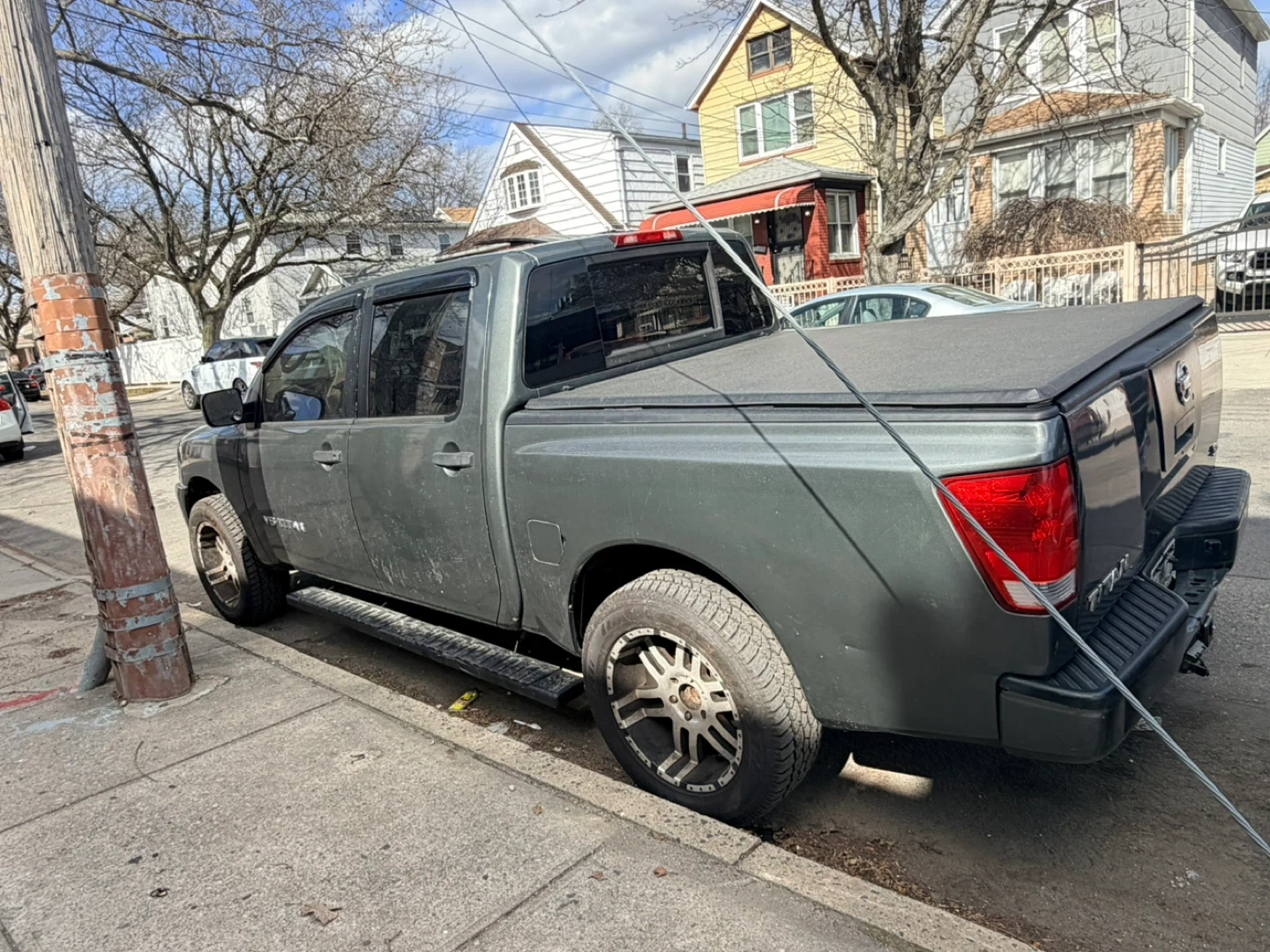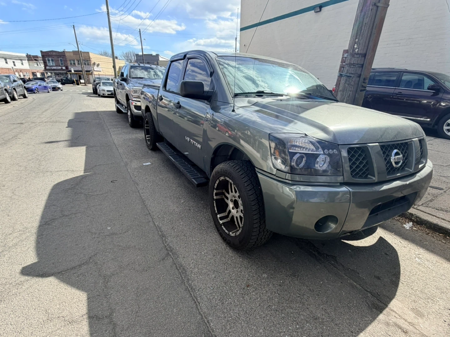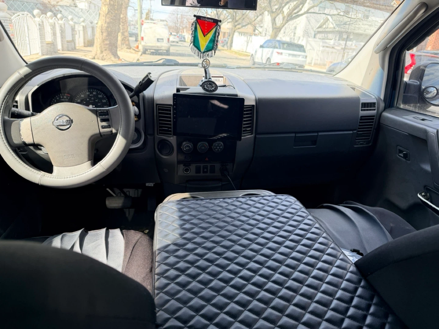 This is a 2007 Nissan Titan V8 Crew Cab pickup truck. It's a four-door model with a covered bed. The interior includes a modern touchscreen display. 140k. Very good truck just need to down size.