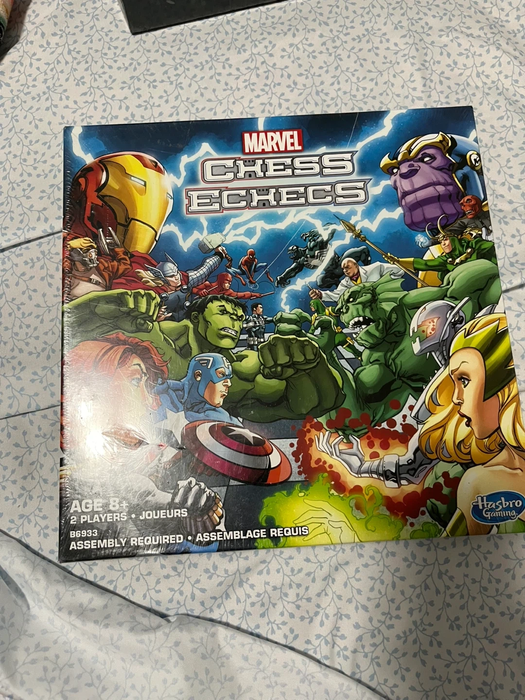 This is the Marvel Chess Echecs game featuring heroes and villains. It includes a game board, 16 hero pieces, 16 villain pieces, and 32 bases. Assembly is required for the game. Great for Marvel fans and chess players alike!