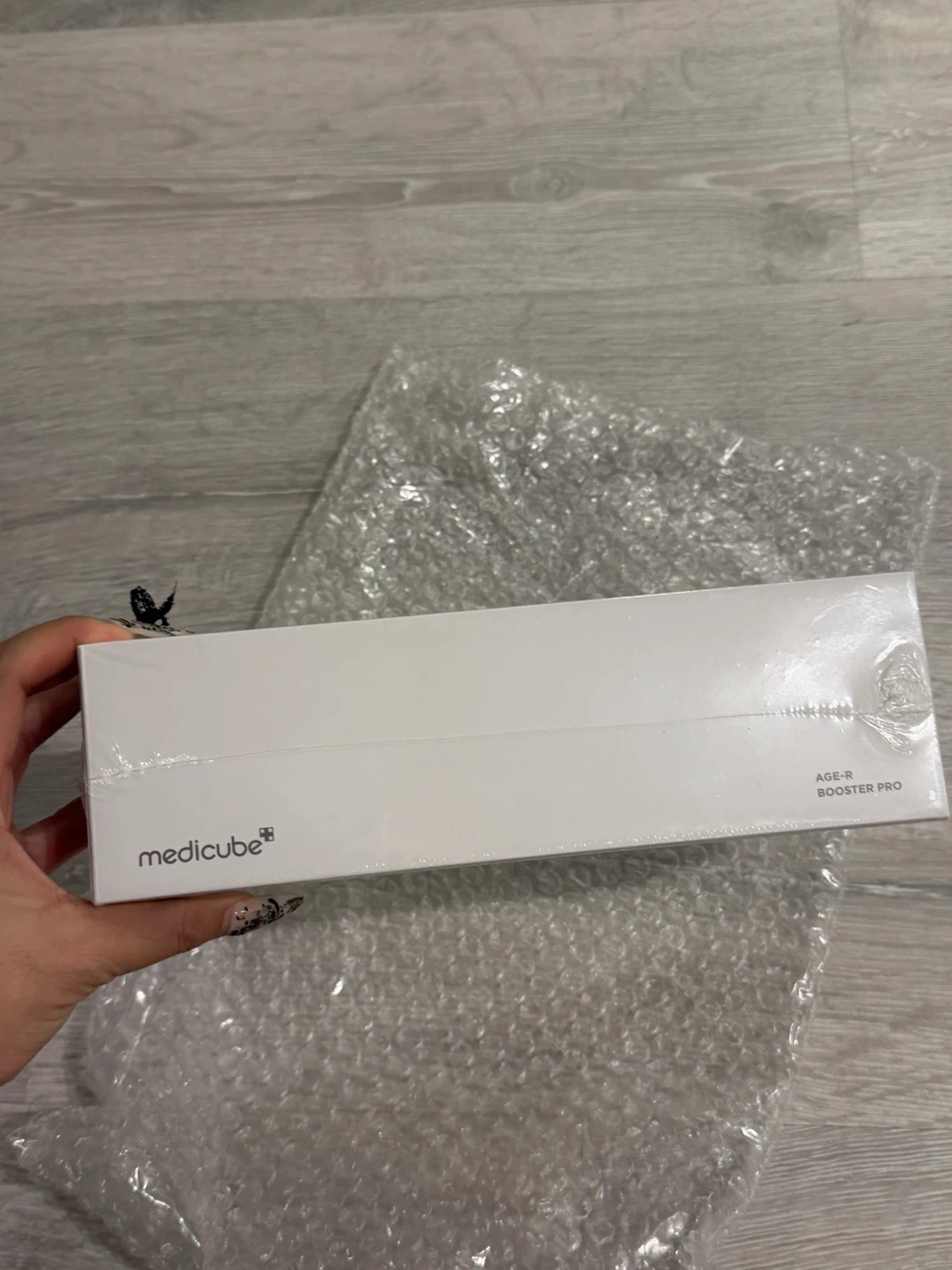 This is a pink Medicube AGE-R Booster Pro device. It's designed to deliver effective skin solutions. Includes the original box.