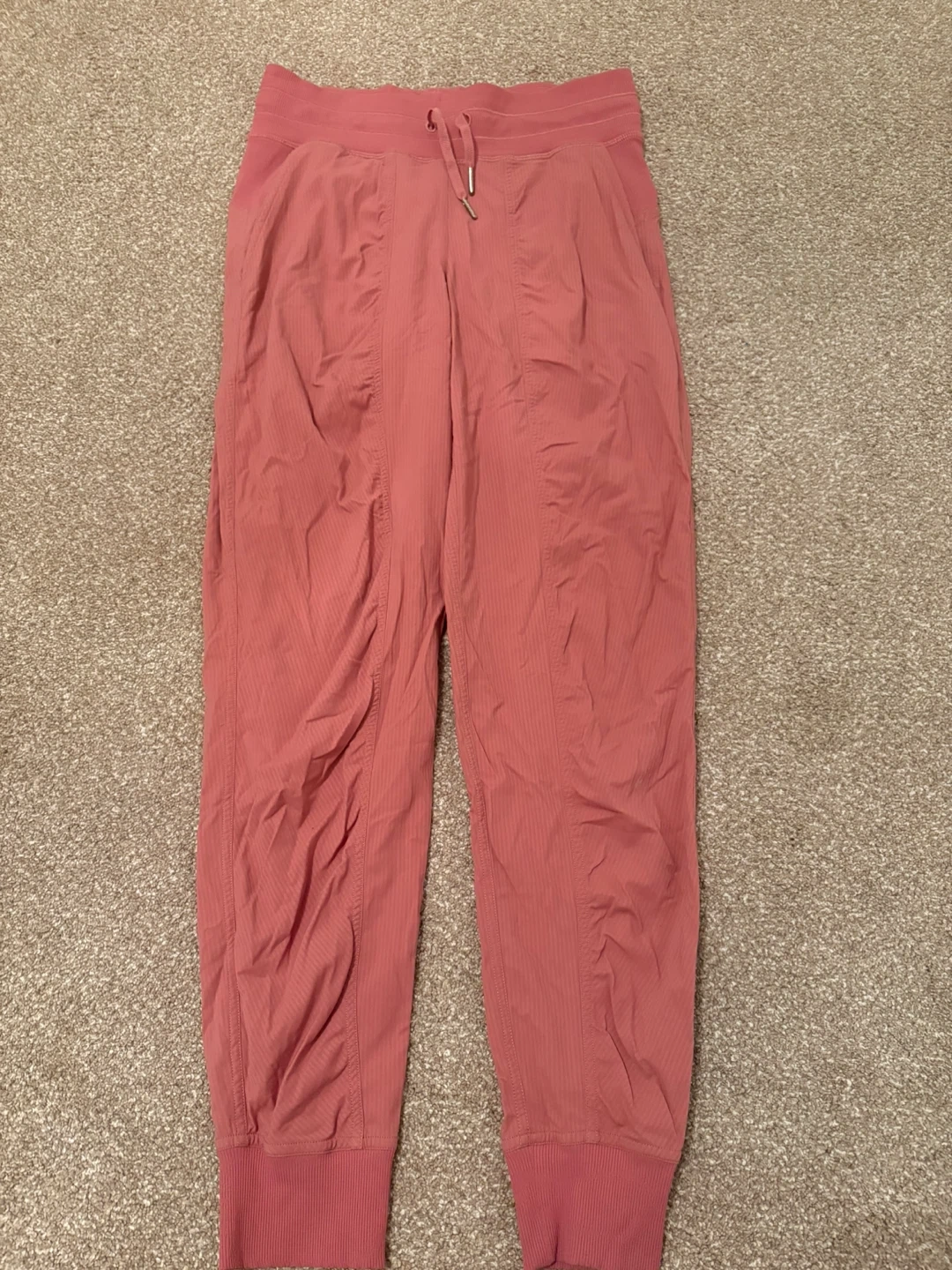 Lululemon Dance Studio Mid-Rise Jogger pants in a soft pink colour. Size is 4. Perfect condition. Full length with a drawstring waist.