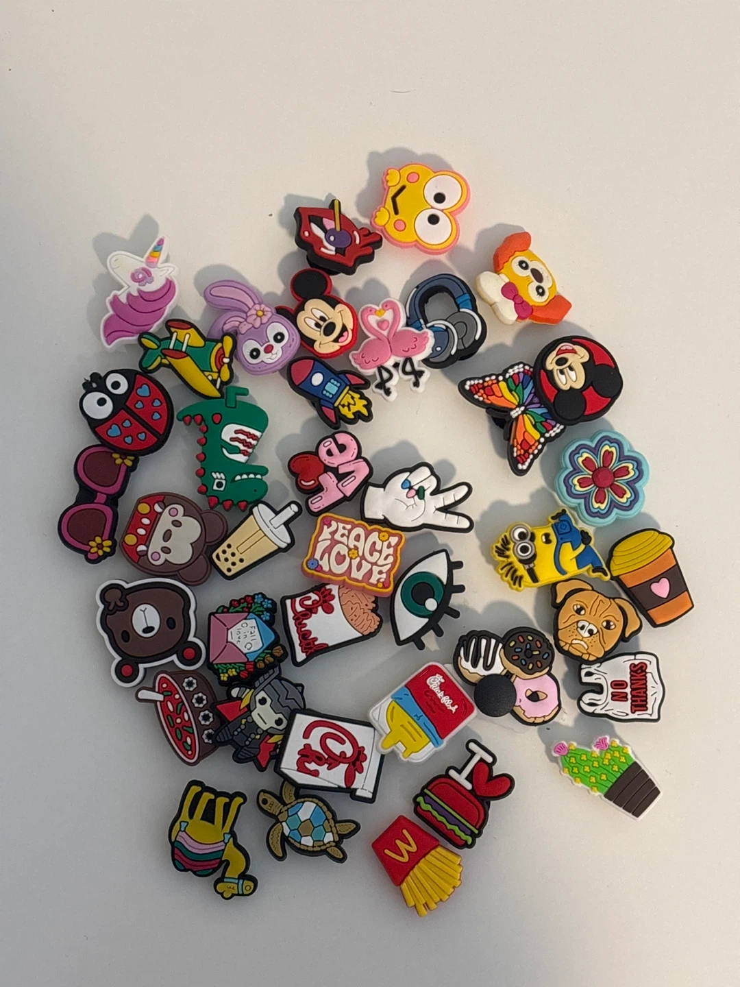 A fun collection of decorative shoe charms. Designs include characters, food items, animals, and more. These charms are great for personalizing footwear and accessories!