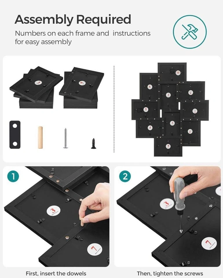 Brand new SONGMICS collage picture frames. This set includes 10 individual frames that you can arrange on your wall separately or combine into a single stylish collage. Sleek ink black finish perfect for family photos, memories, or artwork.