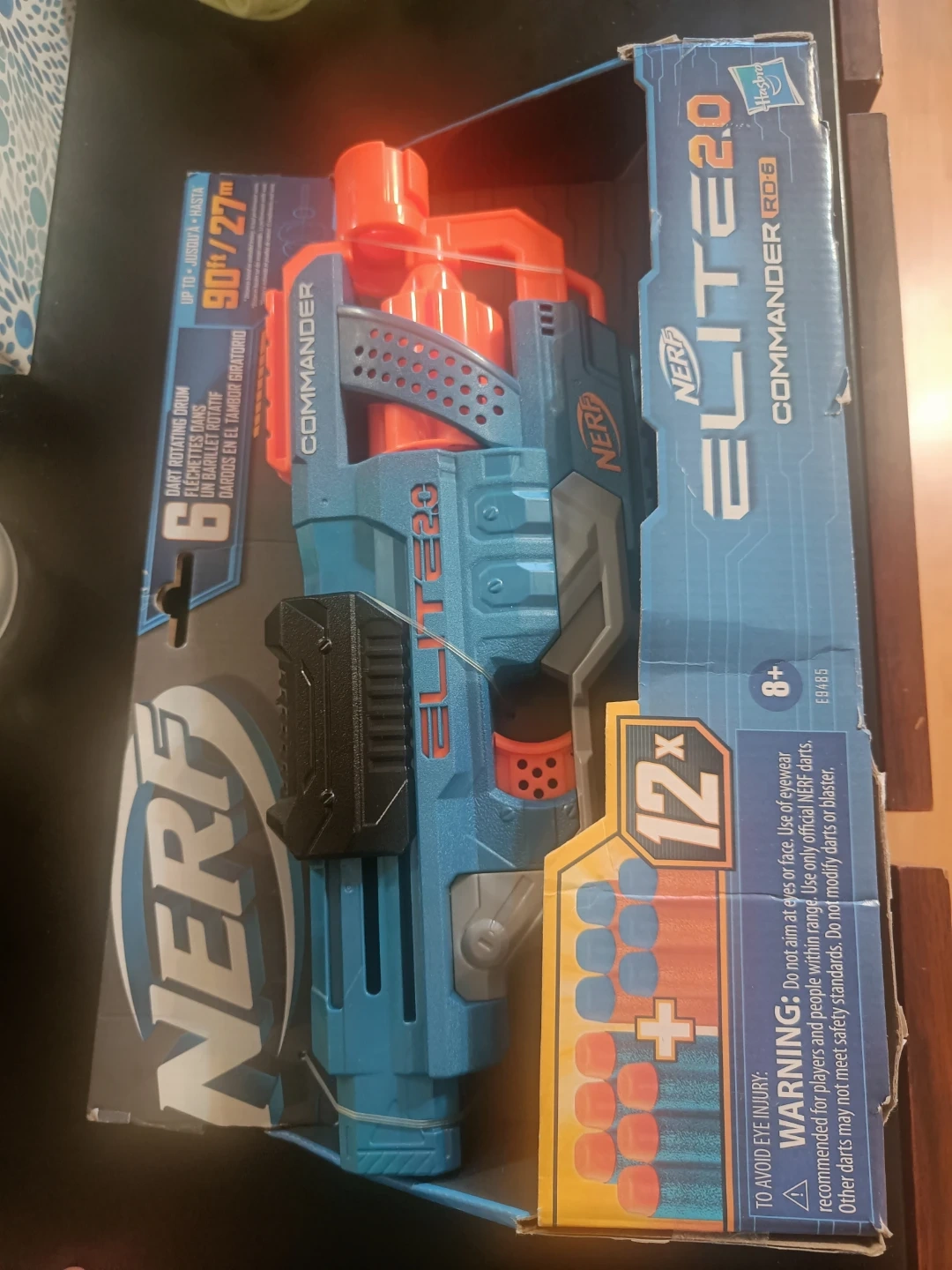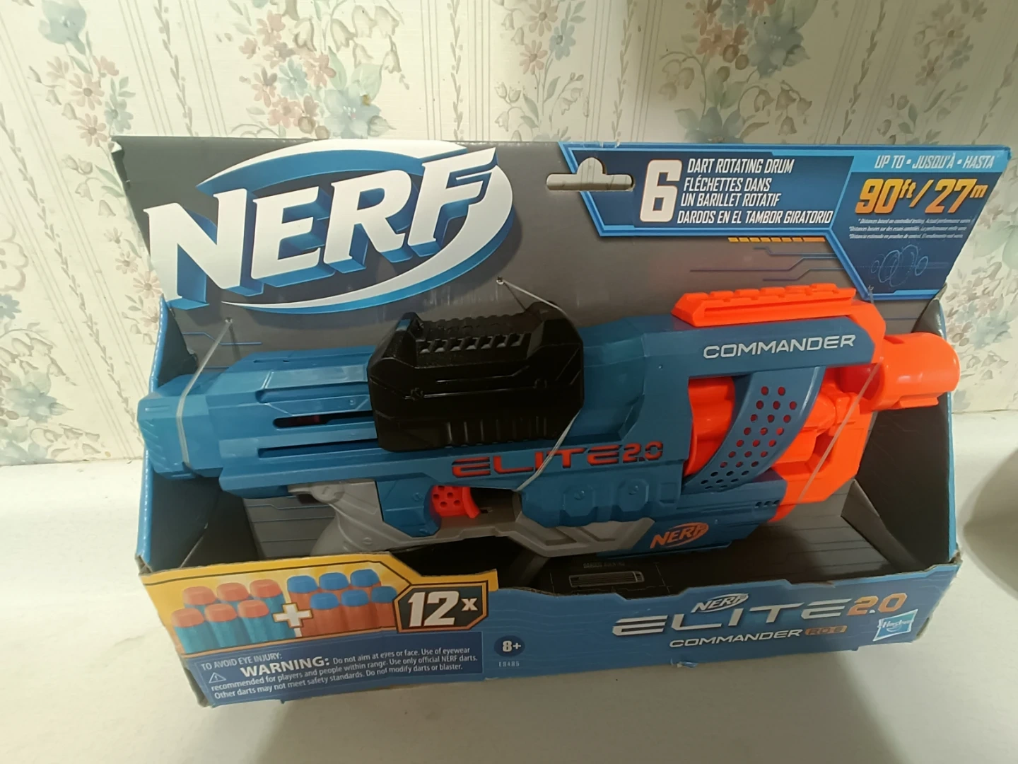 This Nerf Elite 2.0 Commander RD-6 blaster comes with a 12-dart capacity. It features a rotating dart drum and a removable barrel attachment. Suitable for ages 8 and up.
