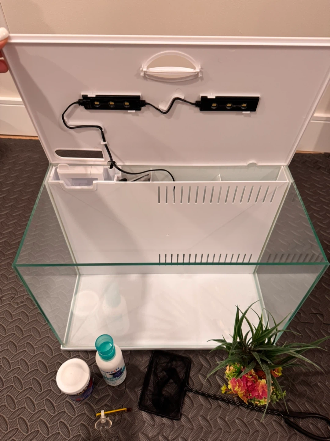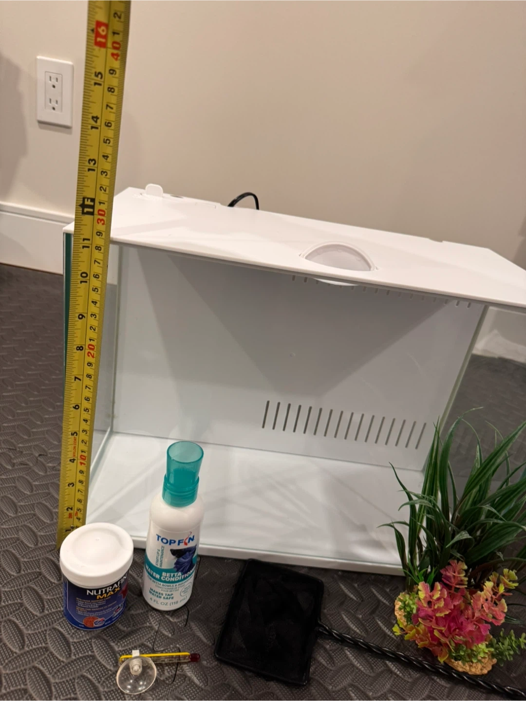 It comes with plant, net, thermometer and water conditioner