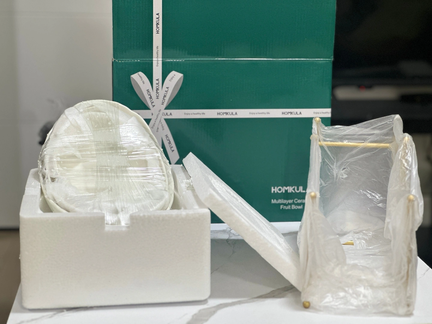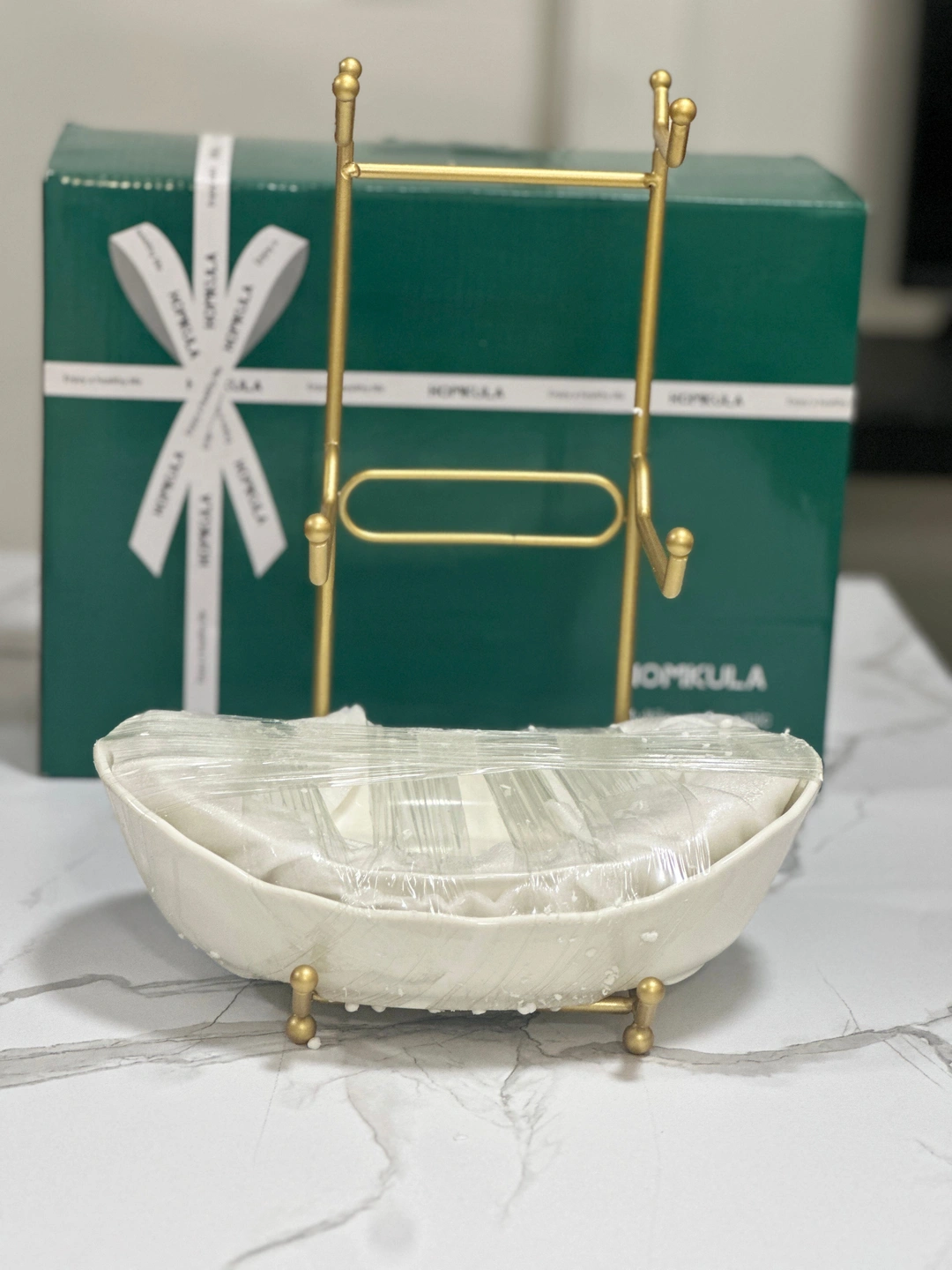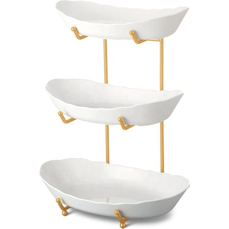 Porcelain Fruit Bowl – White with Gold Iron Stand