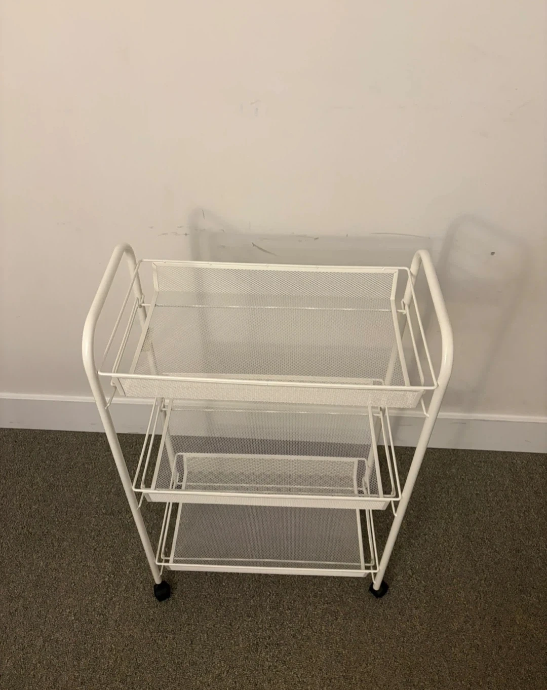 MOVING SALE❗️White 3-Tier Mesh Rolling Cart