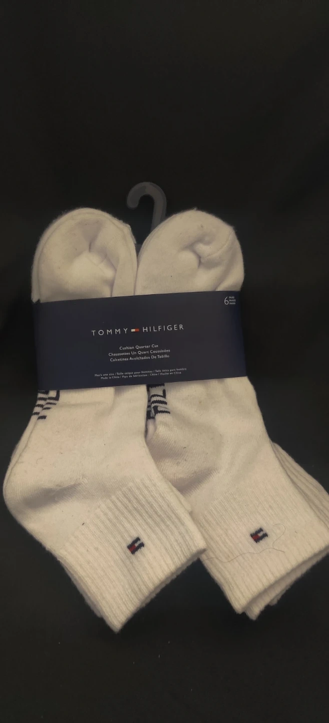 Tommy Hilfiger men's one size cushion quarter cut socks. Comes in a pack of 6 pairs. Made from a cotton blend.