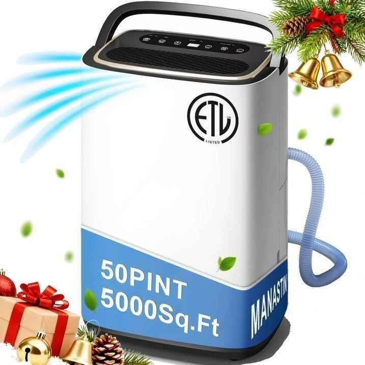 50 Pint Dehumidifier for 5000 Sq Ft w/ Wheels & Handle