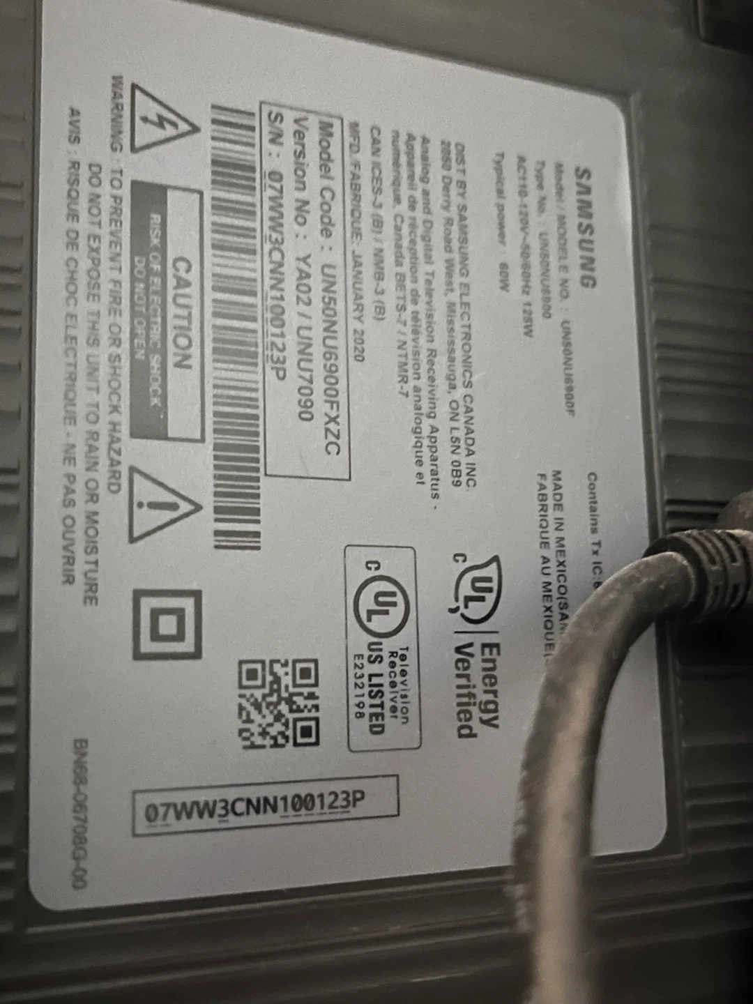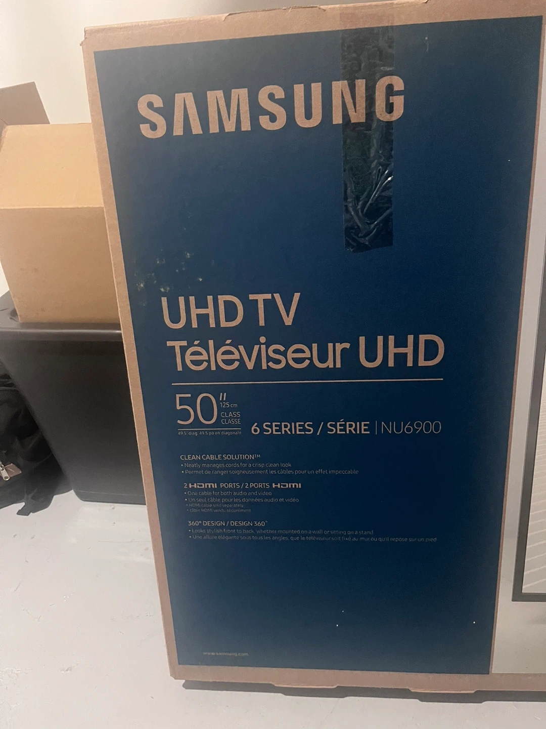 Samsung 50 inch UHD TV, 6 Series, NU6900 model. Features Clean Cable Solution for a tidy look. Includes 2 HDMI ports and supports audio and video. Manufactured January 2020. This TV is great for any living room!