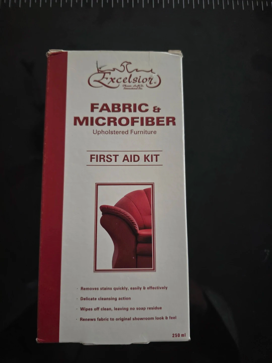 This item is an Excelsior Fabric and Microfiber Upholstered Furniture First Aid Kit used for cleaning.