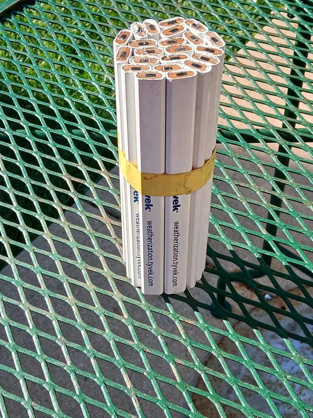 Bundle of 20 carpenter pencils. These pencils are white with hexagonal sides. The ends show graphite and wood. Make a perfect mark with the Oversized, it's great for marking saw lines, drill pits and more. CASH only, no zelle, no Paypal.