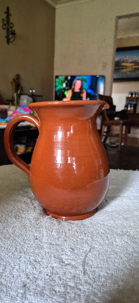 Selling a lovely ceramic pitcher! It's in great shape and would look perfect on any table. The colour is a warm terracotta, making it a neutral piece for any home. It's just waiting for a new home! Great condition, no cracks or chips.