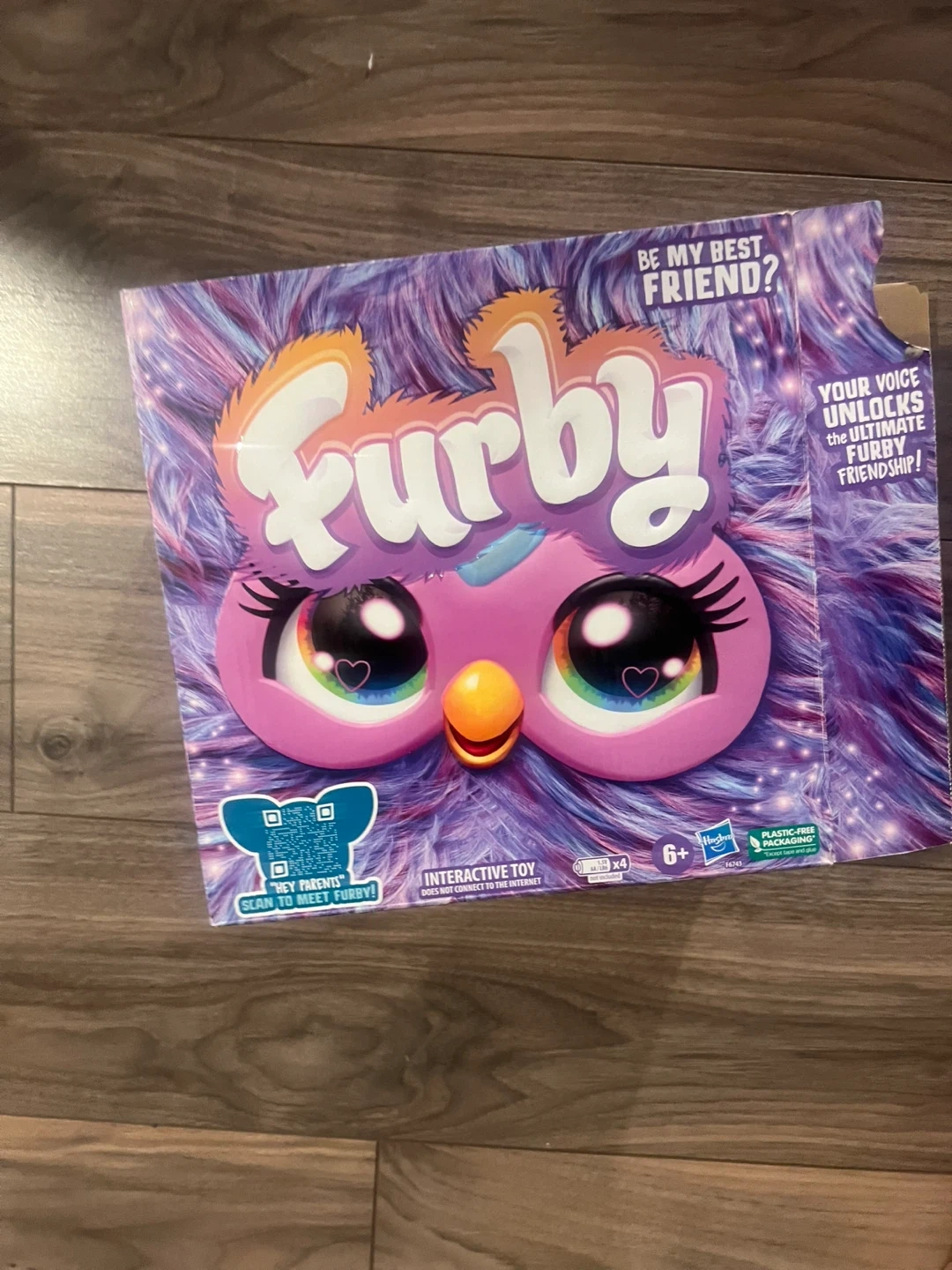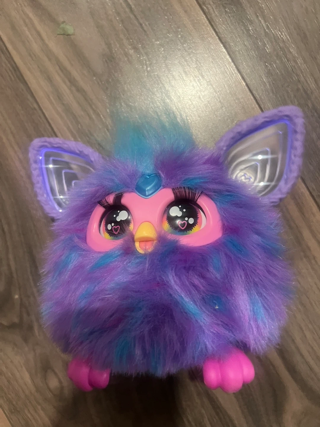 This is a Furby Connect interactive toy in purple and blue. It's an electronic toy that responds to sound and touch. It also comes with its original box.