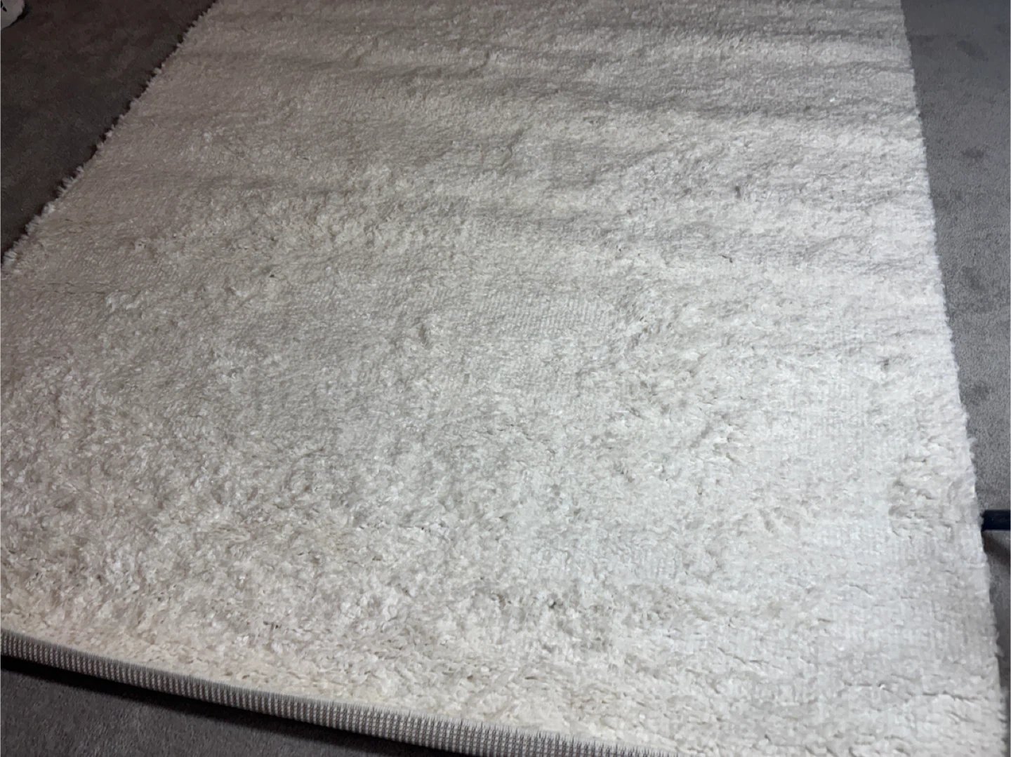 This is the Esmee Performance Indoor Rug. It's a soft, textured rug designed for indoor use. This rug is off-white in colour and would suit most decor styles.