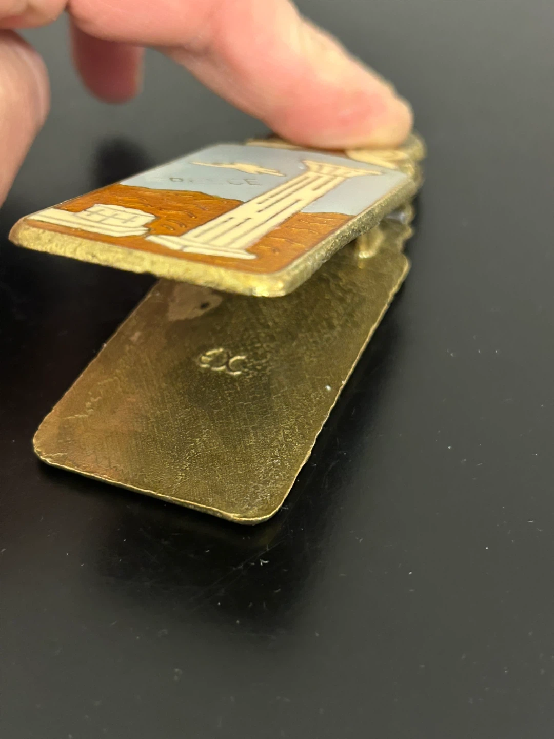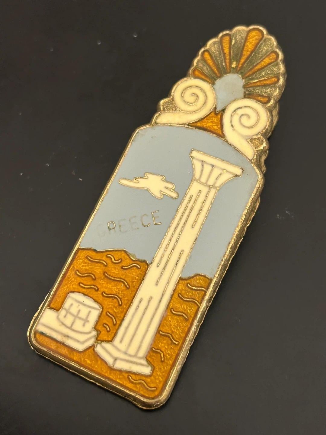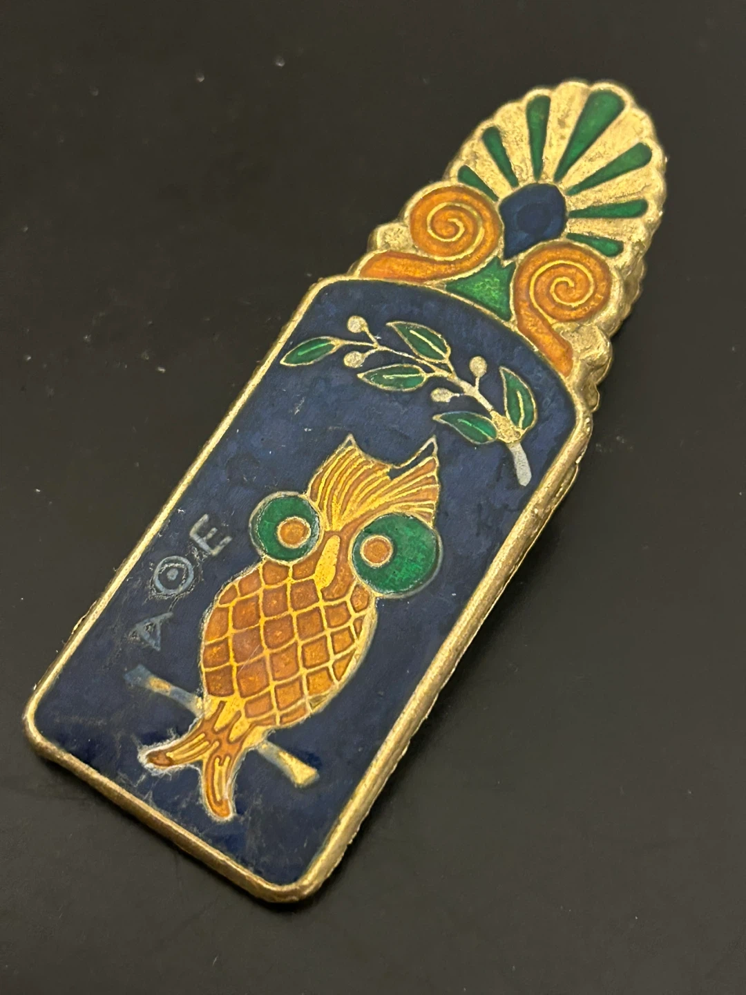 Vintage Greek Enamel Brass Clip 🏆