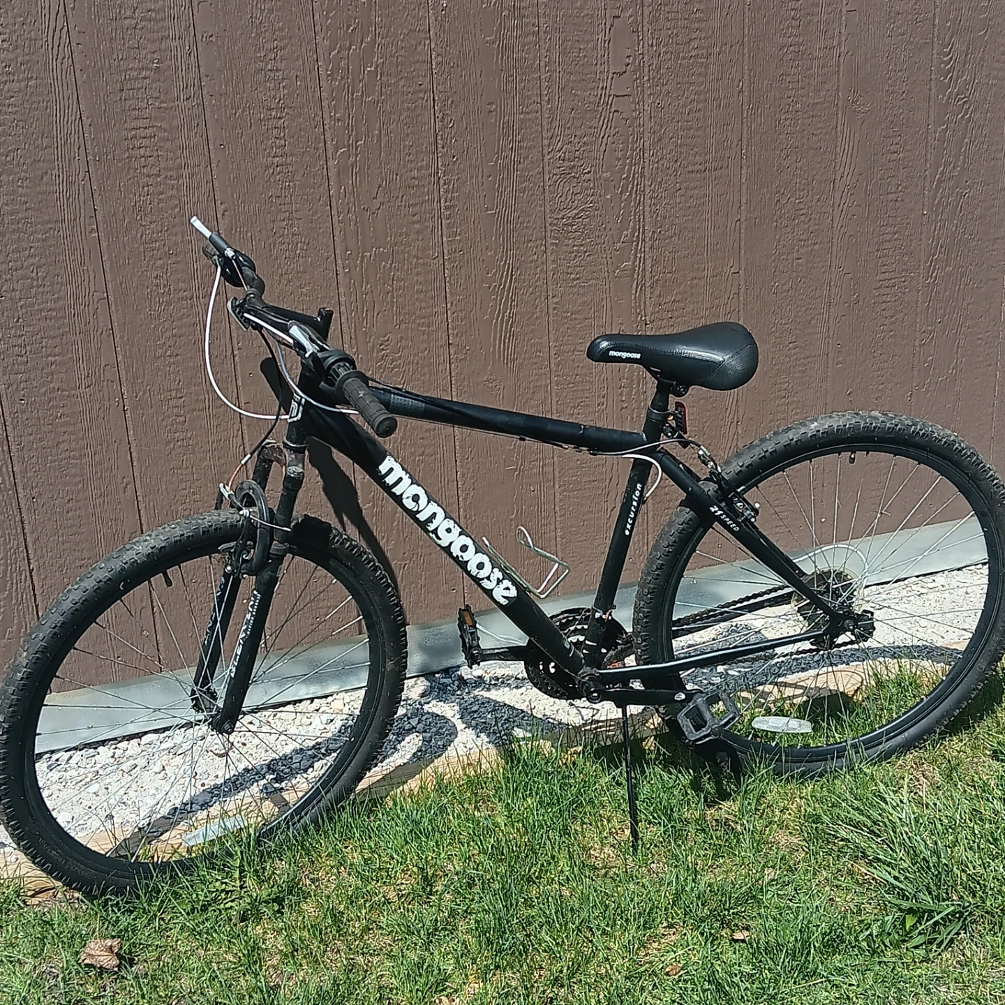 Black Mongoose mountain bike with "Excursion" model name visible.