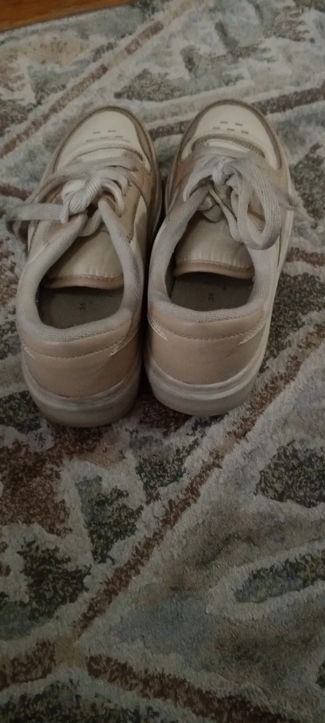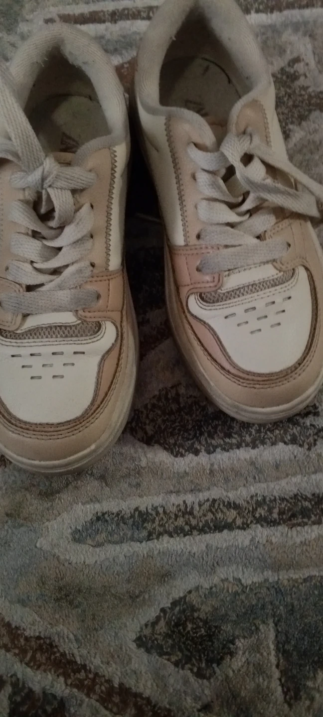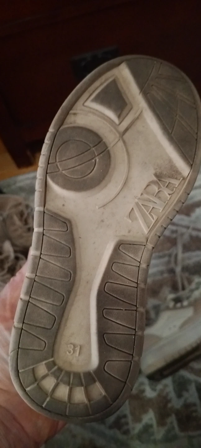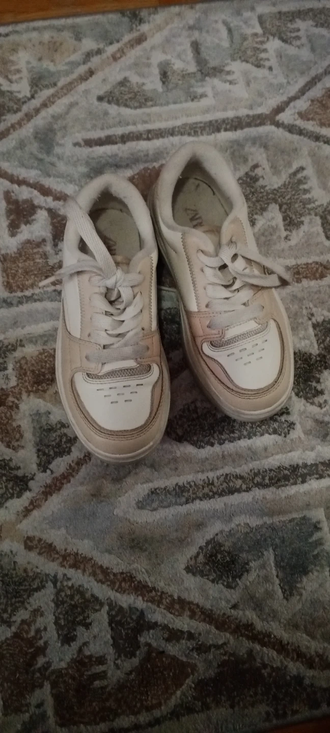 These Zara kids sneakers are a stylish white and tan colour. They're a size 31. The shoes feature laces for a secure fit. Perfect for everyday wear!