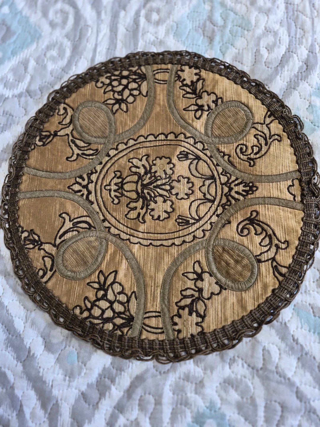 Beautiful Vintage 15" Round Tapestry Doilie Placemat Table Decor
