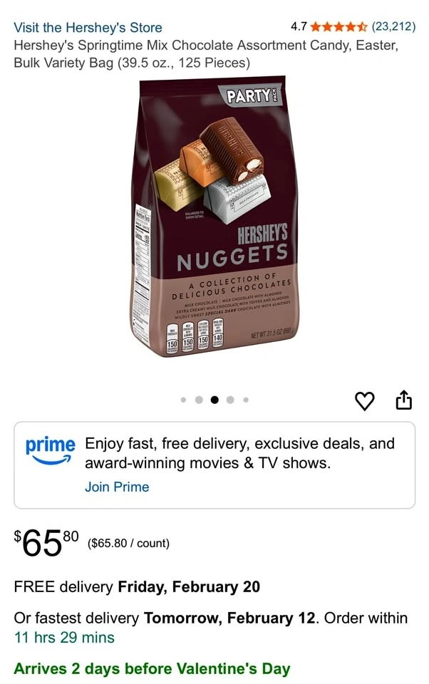 Delicious Hershey's Nuggets Party Pack. Has a mix of milk chocolate, milk chocolate with almonds, extra creamy milk chocolate with toffee and almonds, and special dark chocolate with almonds. Bag is 31.5 oz (893 g).
