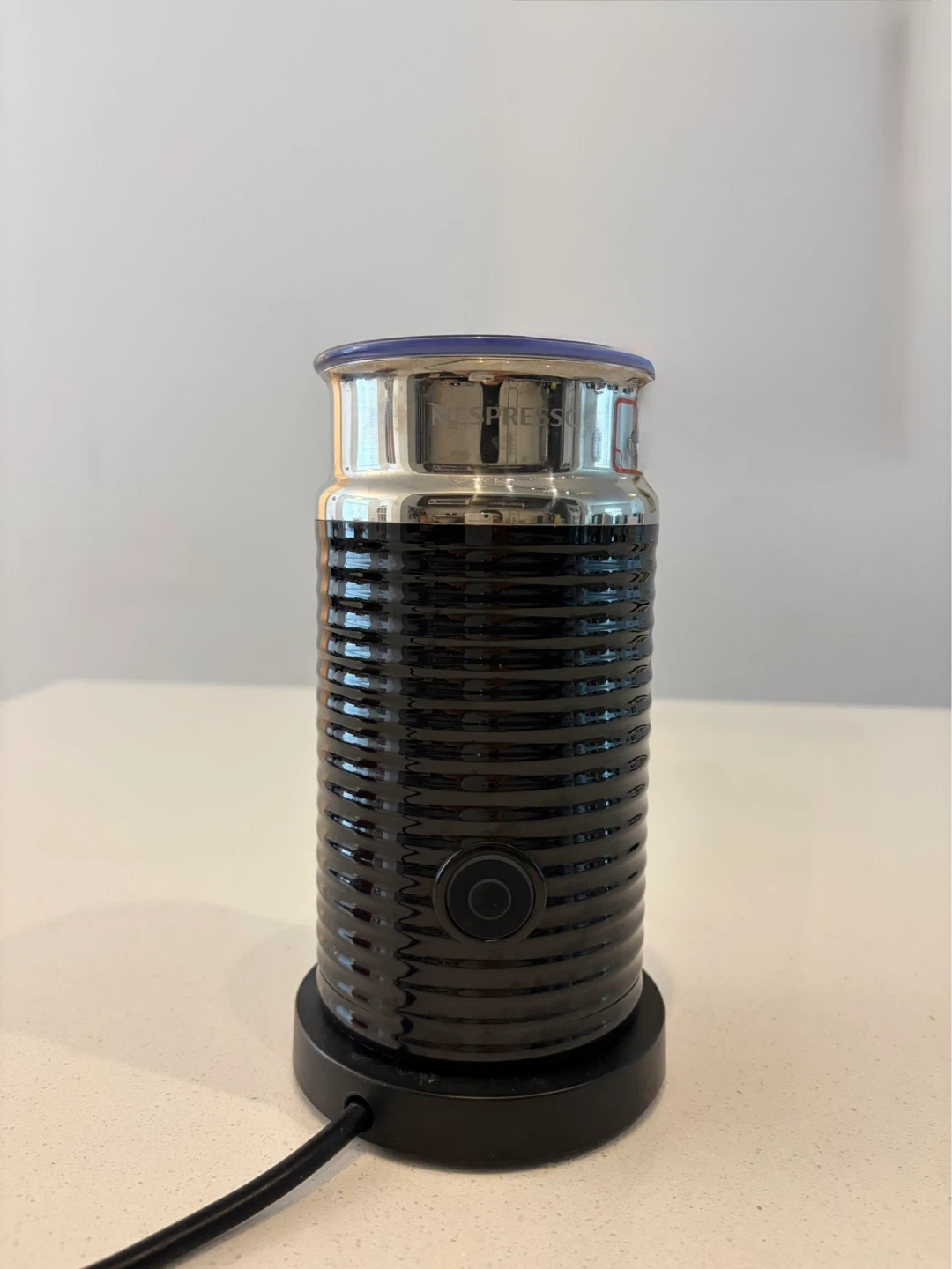 Nespresso Aeroccino 3 milk frother in black. It's used to froth milk for your favourite coffee drinks. Simple one-touch operation.