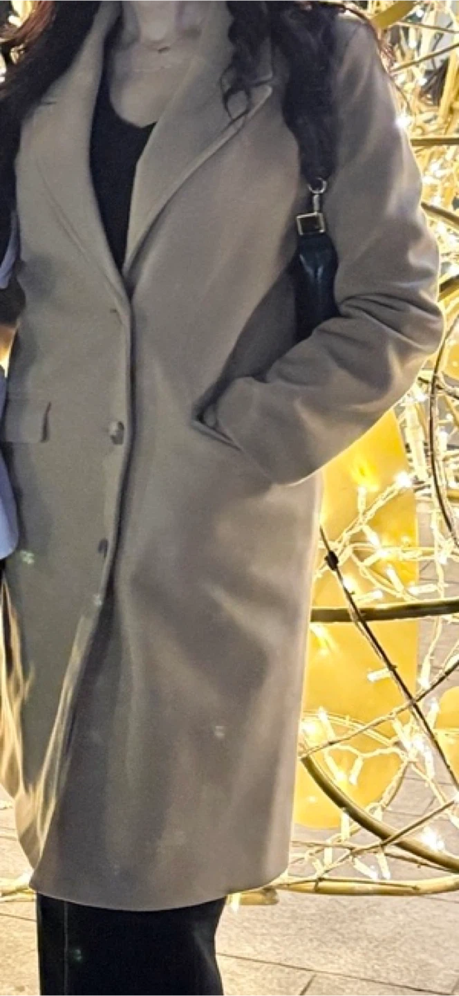 This is a stylish, long camel coat. It's made of a soft material and features a classic lapel design. The coat is perfect for cooler weather and layering over outfits. Size medium, worn once so is in excellent condition.