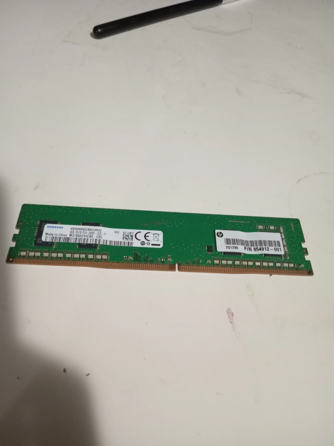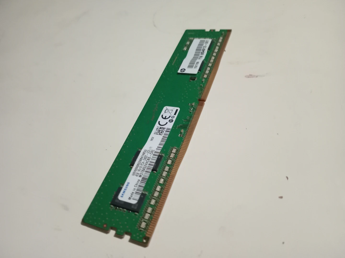 DDR4 Desktop RAM DIMM. This is a single stick of computer memory. It's green in colour and made of circuit board material. Useful for upgrading your computer's performance.