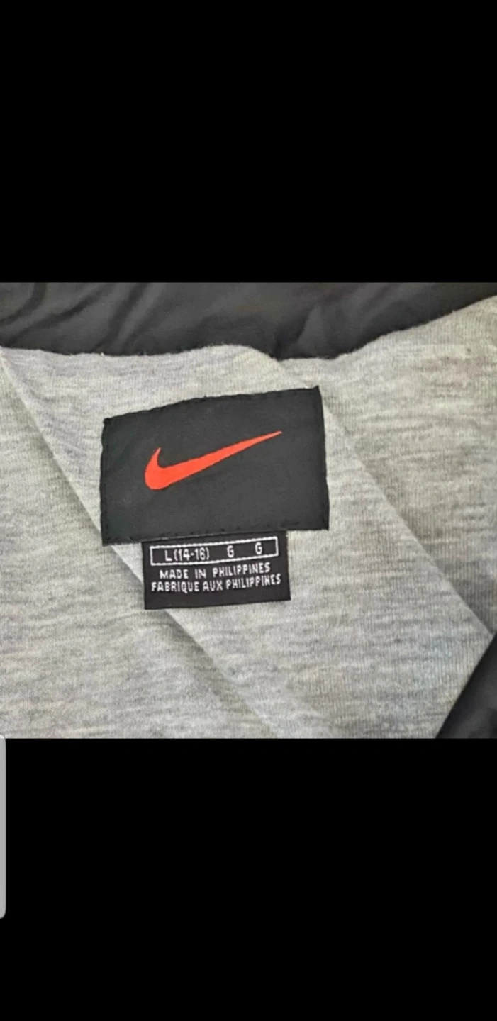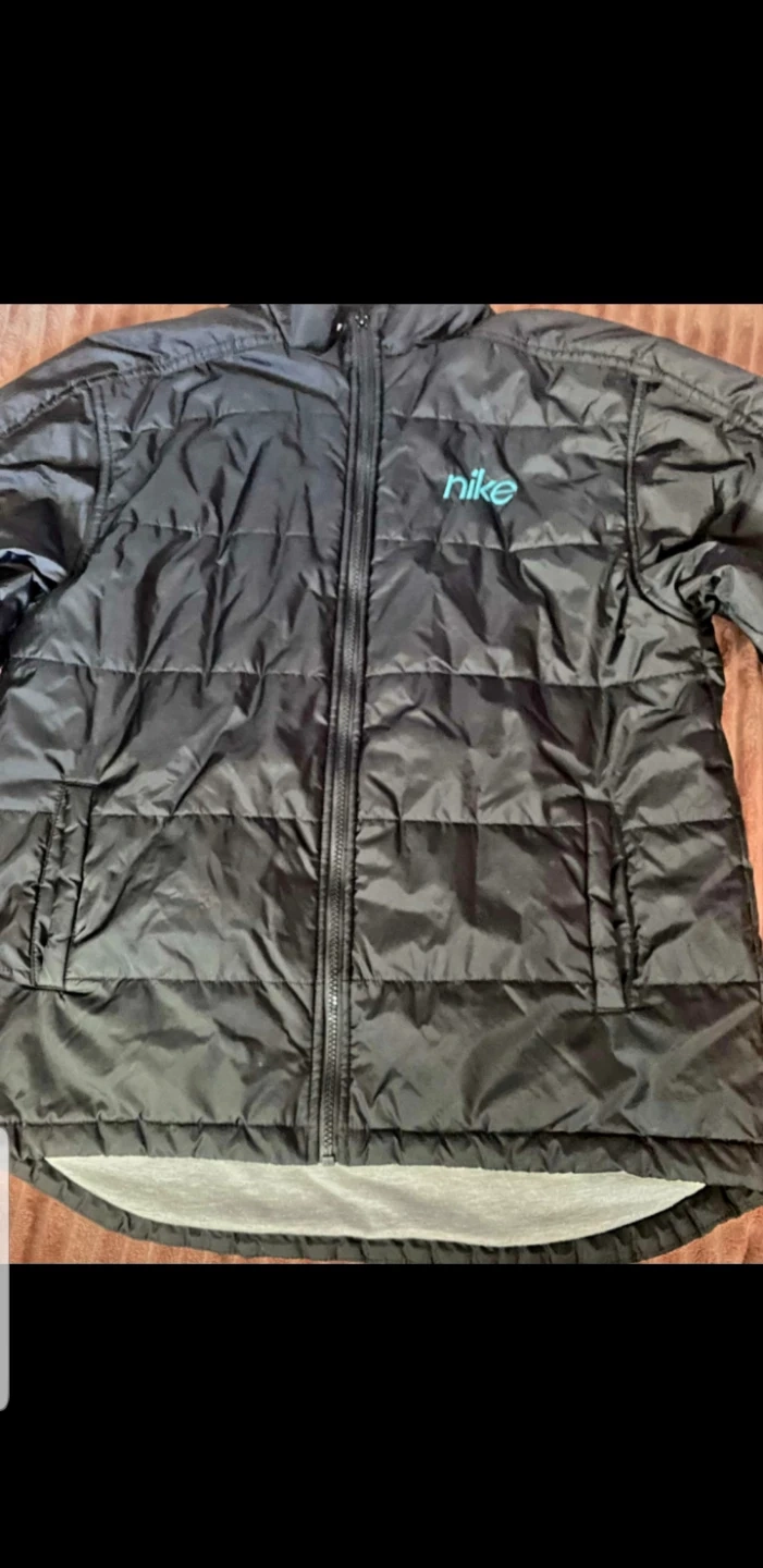 Selling a Nike puffer jacket in black, size L (14-16). It's in great condition and perfect for staying warm. Made in the Philippines.