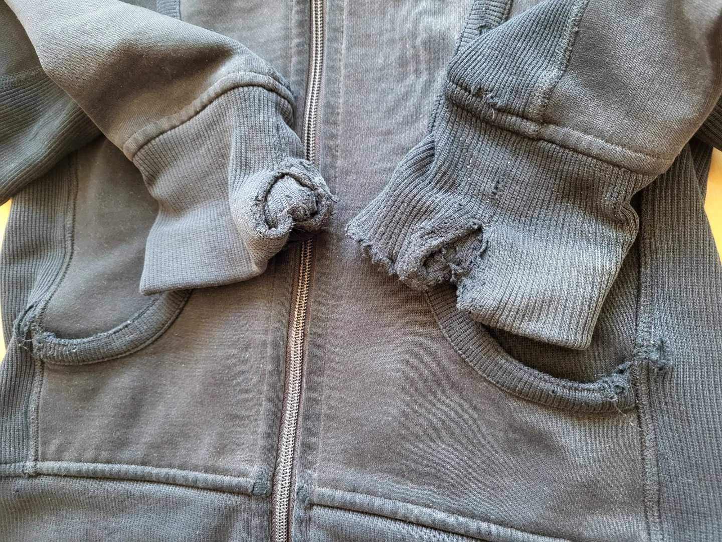Some signs of wear and the handle on the zipper just broke off (zipper still works!)