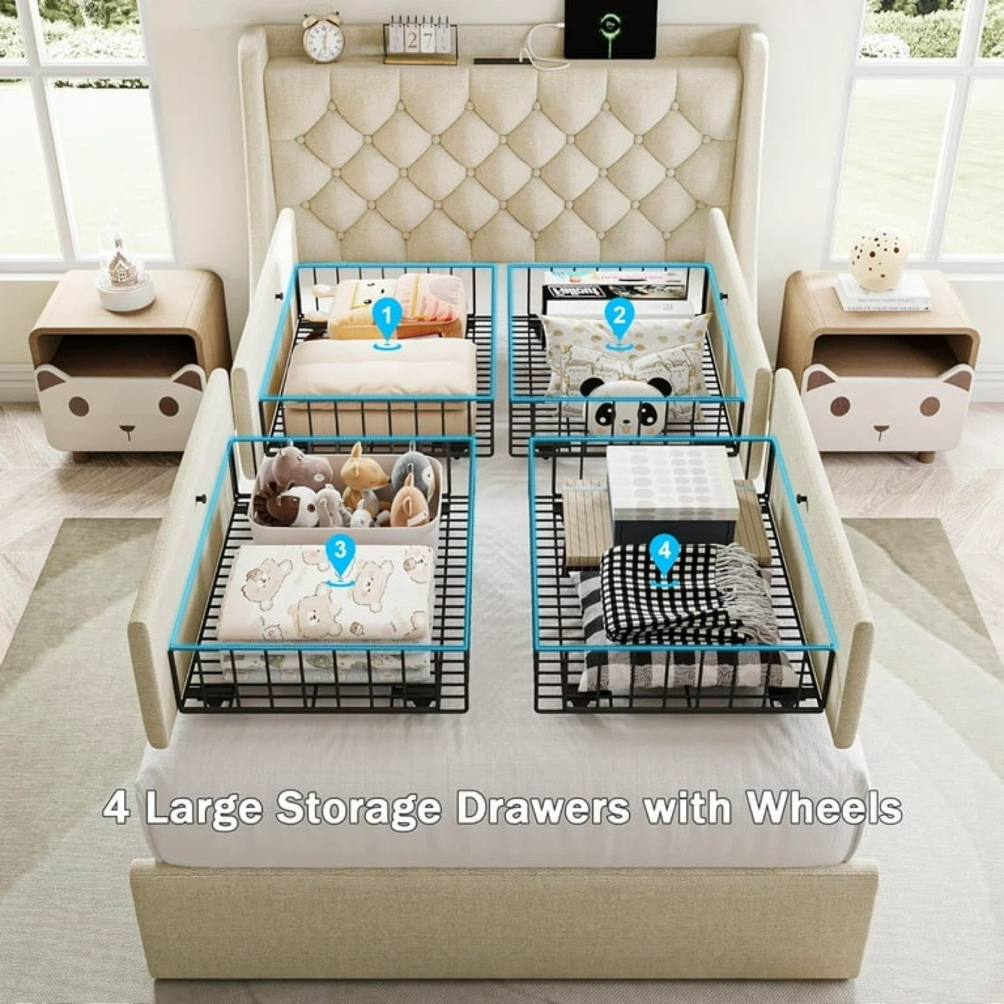 Space Saver Drawers: 4 separated drawers are smooth to pull out and pull in, not only providing ample space for clothes and bedding but also easy to clean under the bed. Greatly optimize your tidy bedroom