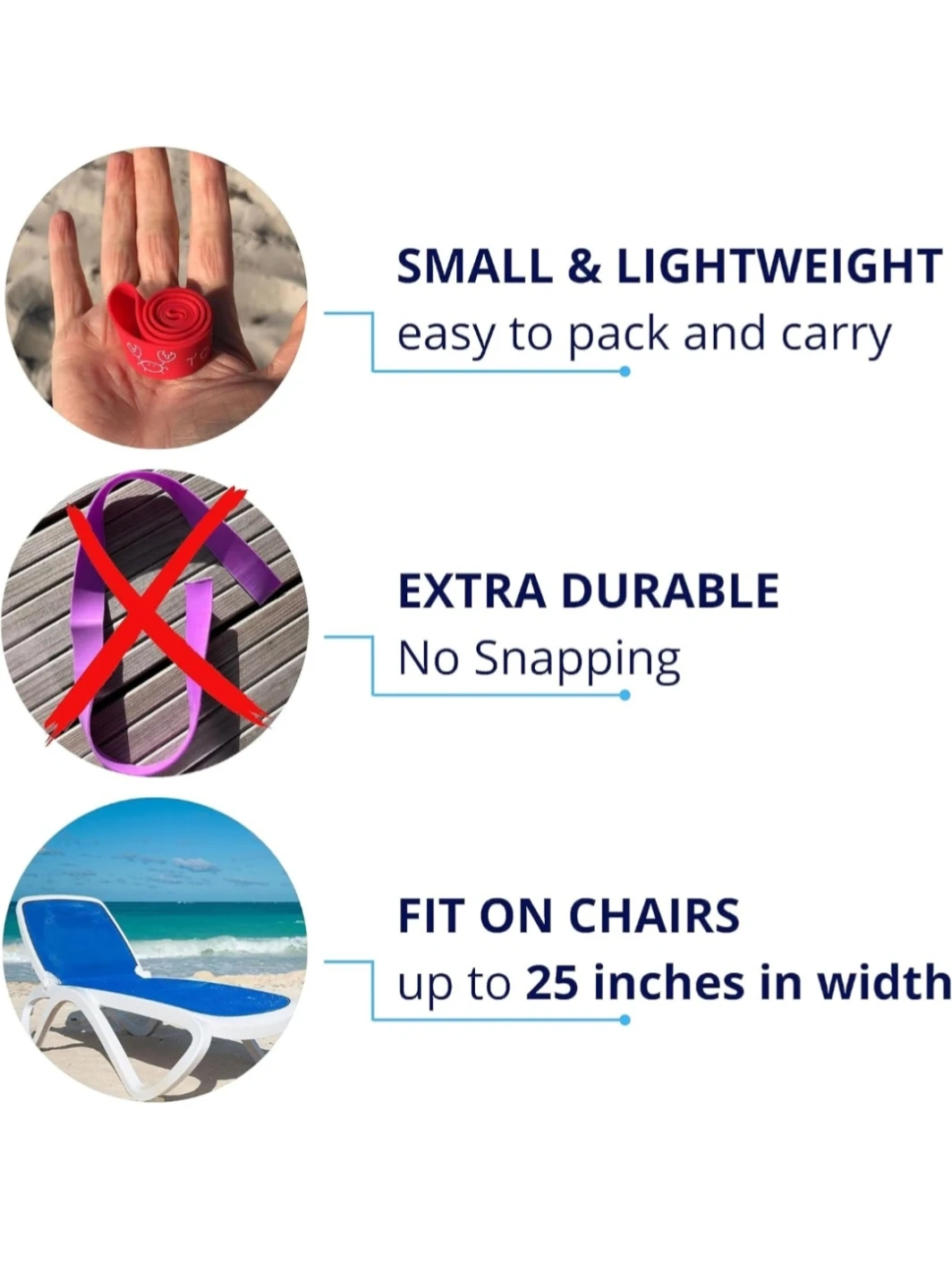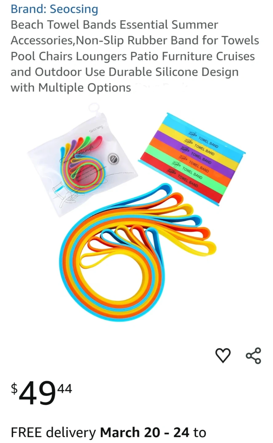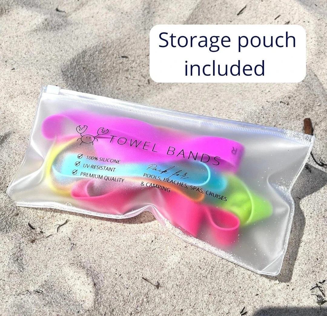 Keep your towels secure with these brand-new Seocsing towel bands. Made from 100% silicone, they're UV-resistant and durable. A storage pouch is included for easy packing. They're great for pools, beaches, spas, cruises, and camping!