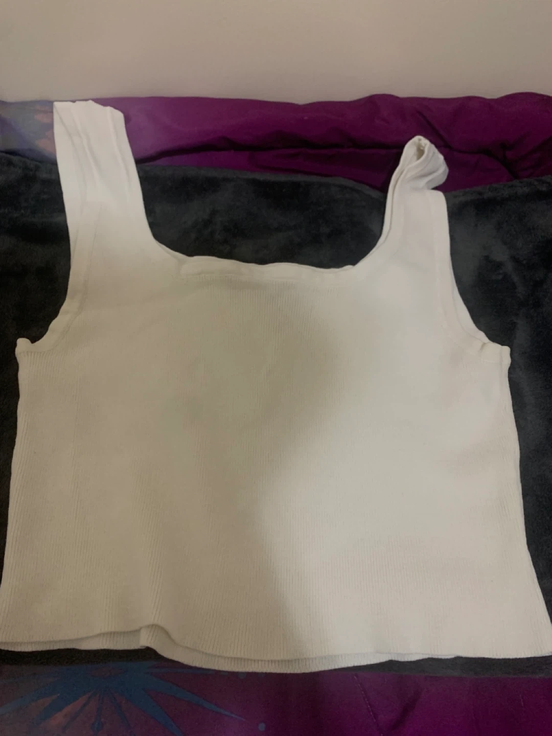 White ribbed tank top from Dissh. Size 8. Made of a stretchy cotton blend.