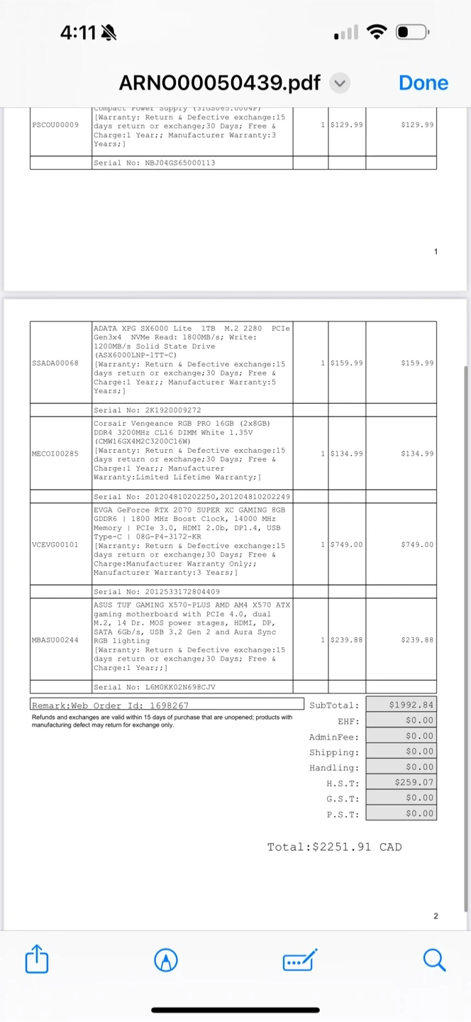Originally, the total cost for all the components was $2251.91 CAD.