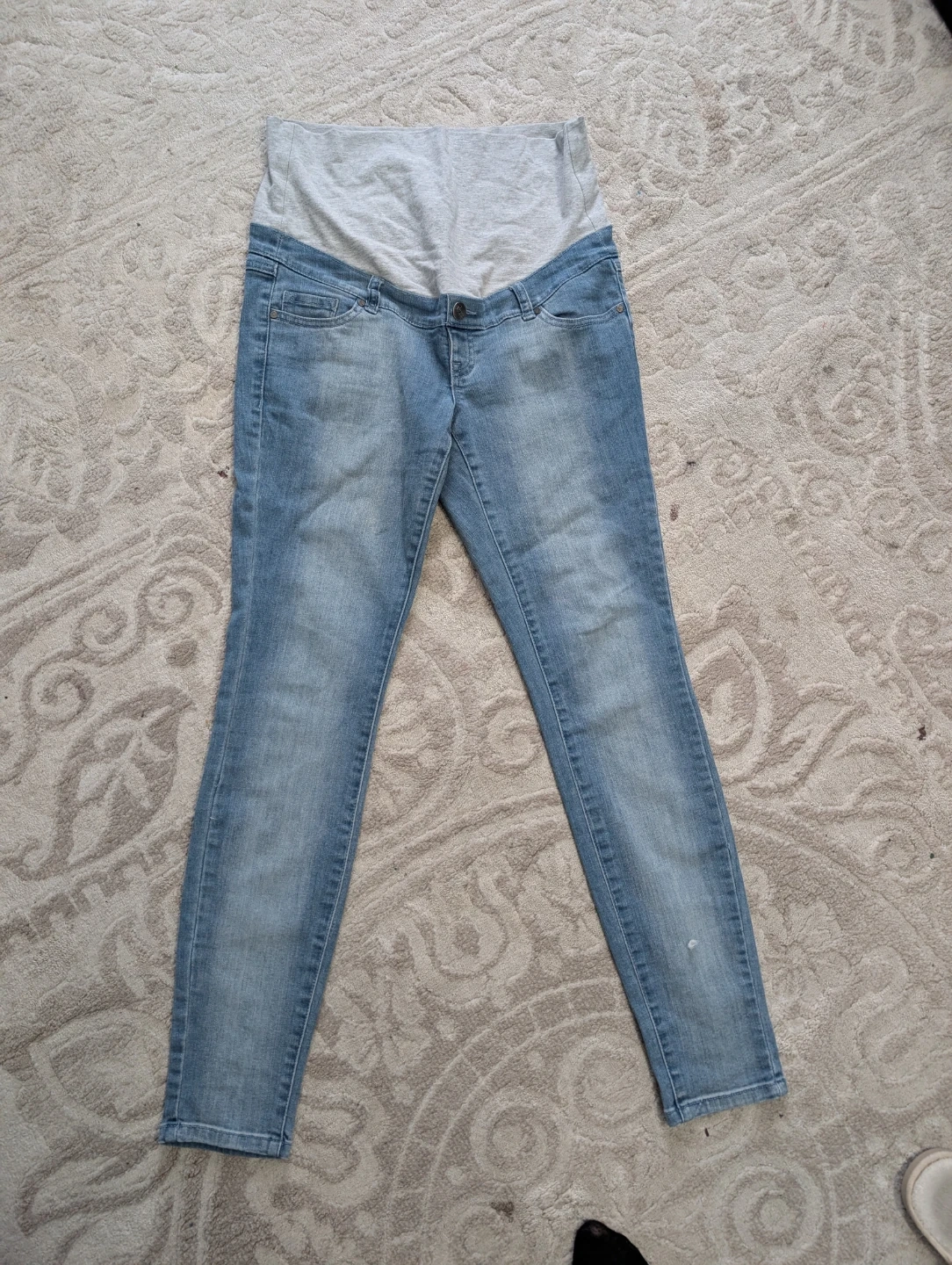 Light wash maternity jeans with a comfortable over-the-belly panel. Denim material. Only worn once bought from thyme maternity.