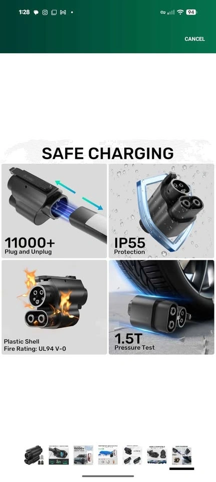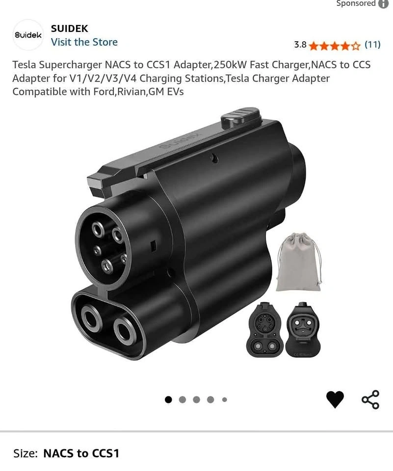 New NACS to CCS1 EV Charging Adapter. This adapter is perfect for charging your CCS1 electric vehicle (Ford, Hyundai, BMW, VW, etc.) using Tesla Superchargers that support the NACS plug. It allows CCS1 EVs to connect to Tesla NACS charging stations and supports fast charging up to 250kW (depending on your vehicle and the charger). It's compact, durable, and easy to use with most EV models (Ford, Hyundai, Kia, VW, Rivian, BMW, etc.). Just plug and play – no setup needed!