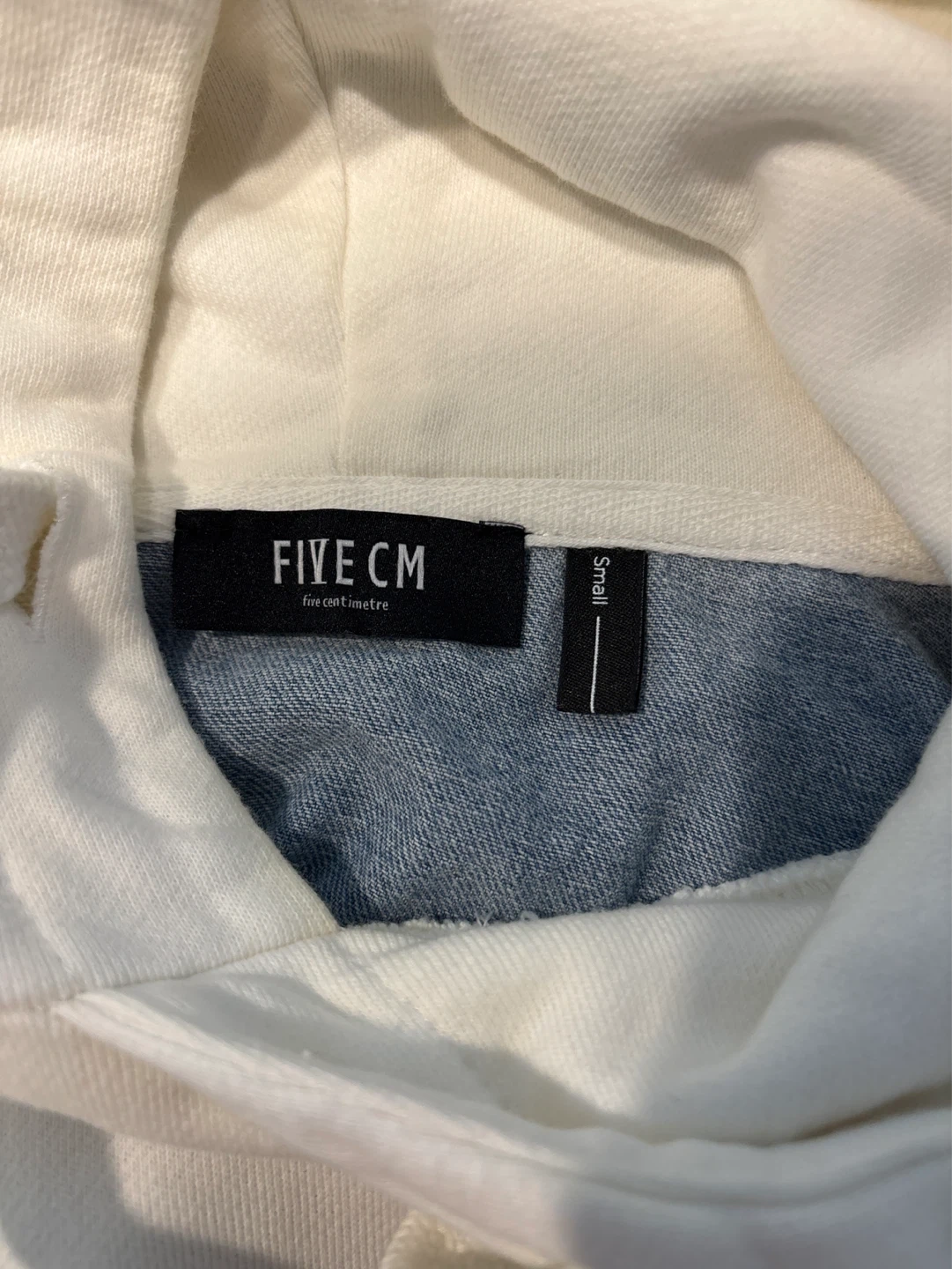 This FIVE CM short sleeve hoodie is a size small. It's made with 100% cotton shell 1 and shell 2, featuring 70% cotton, 20% viscose, and 13% polyester. It's a unique blend for a stylish look.