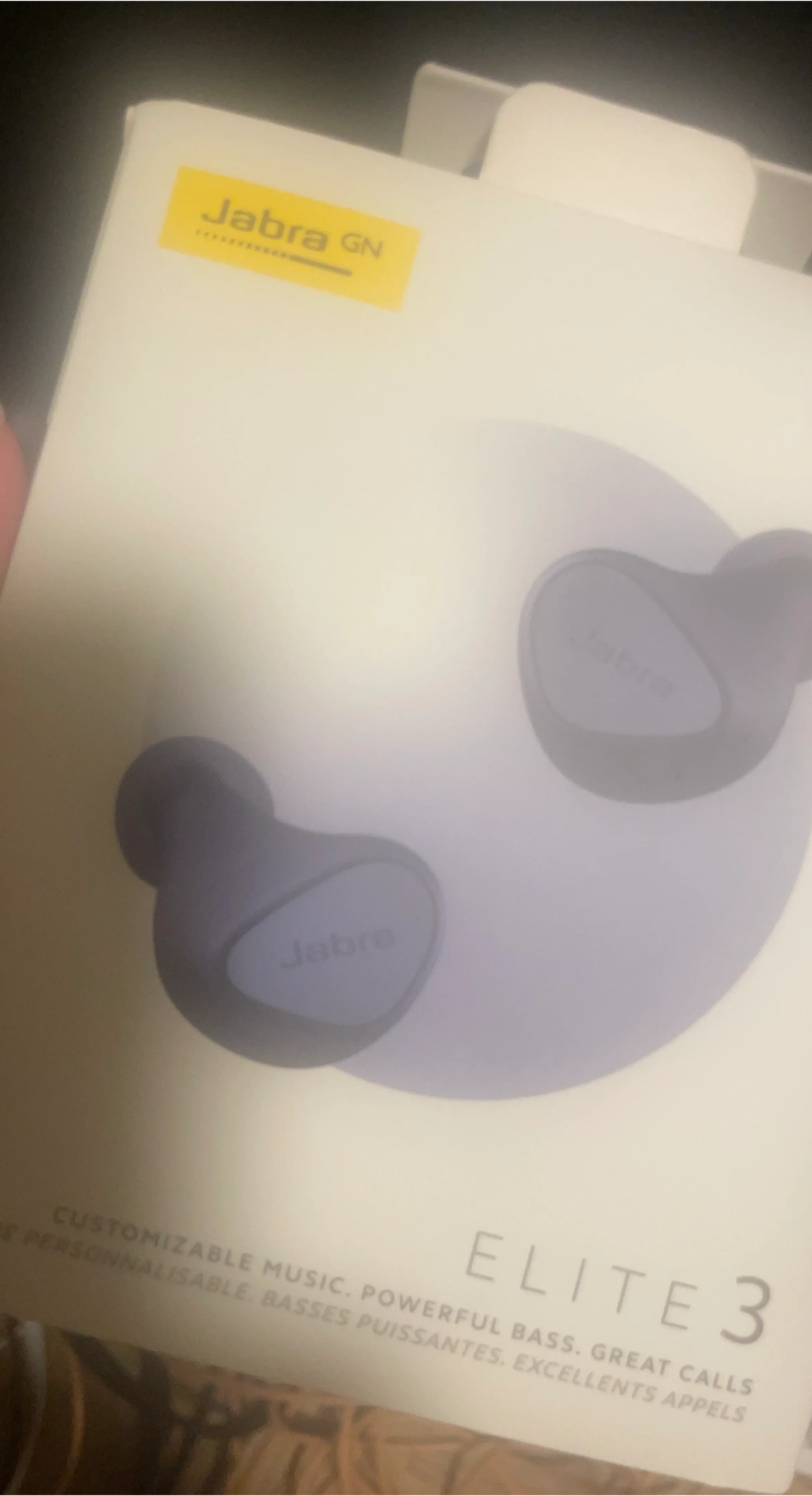 These are Jabra Elite 3 true wireless earbuds. They feature customizable music, powerful bass, and great calls. Designed for comfortable, all-day wear!