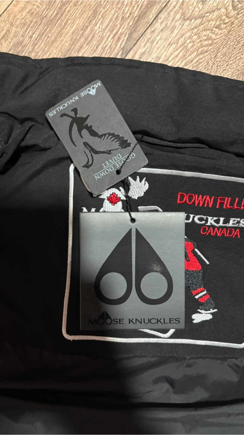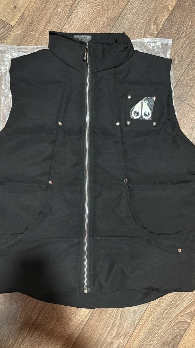 Moose Knuckles black goose down filled vest. Size large. Includes original tags and packaging. Brand new never wored