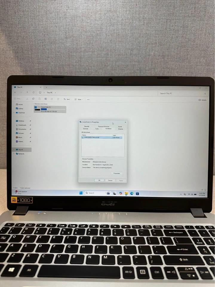 This Acer Aspire 5 is in excellent condition and fully functional with a fresh install of Windows 11. It's a great choice for students, business professionals, or anyone working from home. Specs include: AMD Ryzen 3 3200U processor, 128GB NVME SSD, 8GB RAM, backlit keyboard, built-in Alexa, Radeon Graphics for light gaming or content creation, and a 15” 1080 Full HD display. Let me know if you're interested!