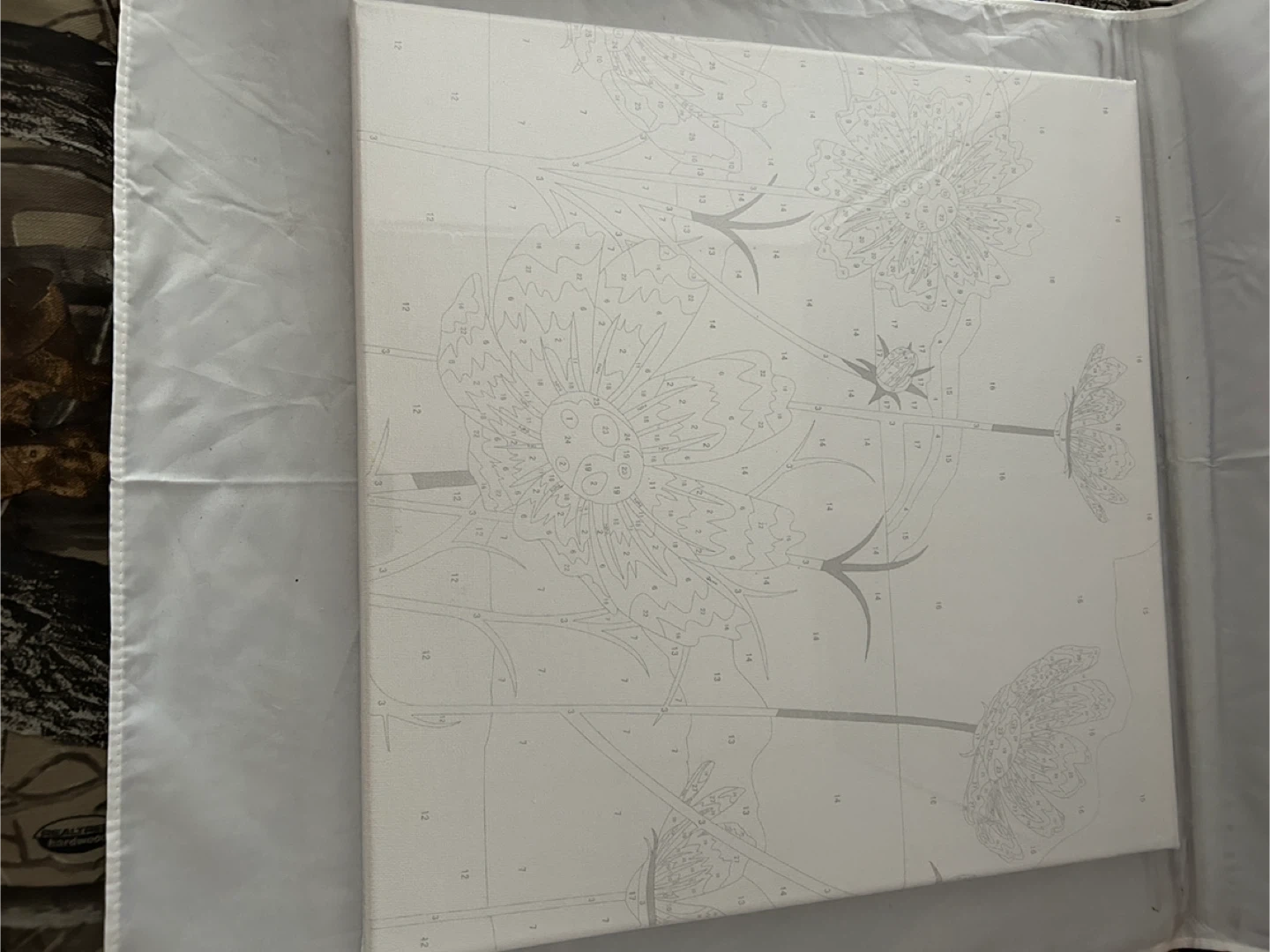 Get creative with this Happiness Painting By Numbers kit! Canvas with different pattern of numbered design. Set of numbered paints with a brush sold separately. $3 for each canvas only, $3 for set of paint. Take all for $10.
