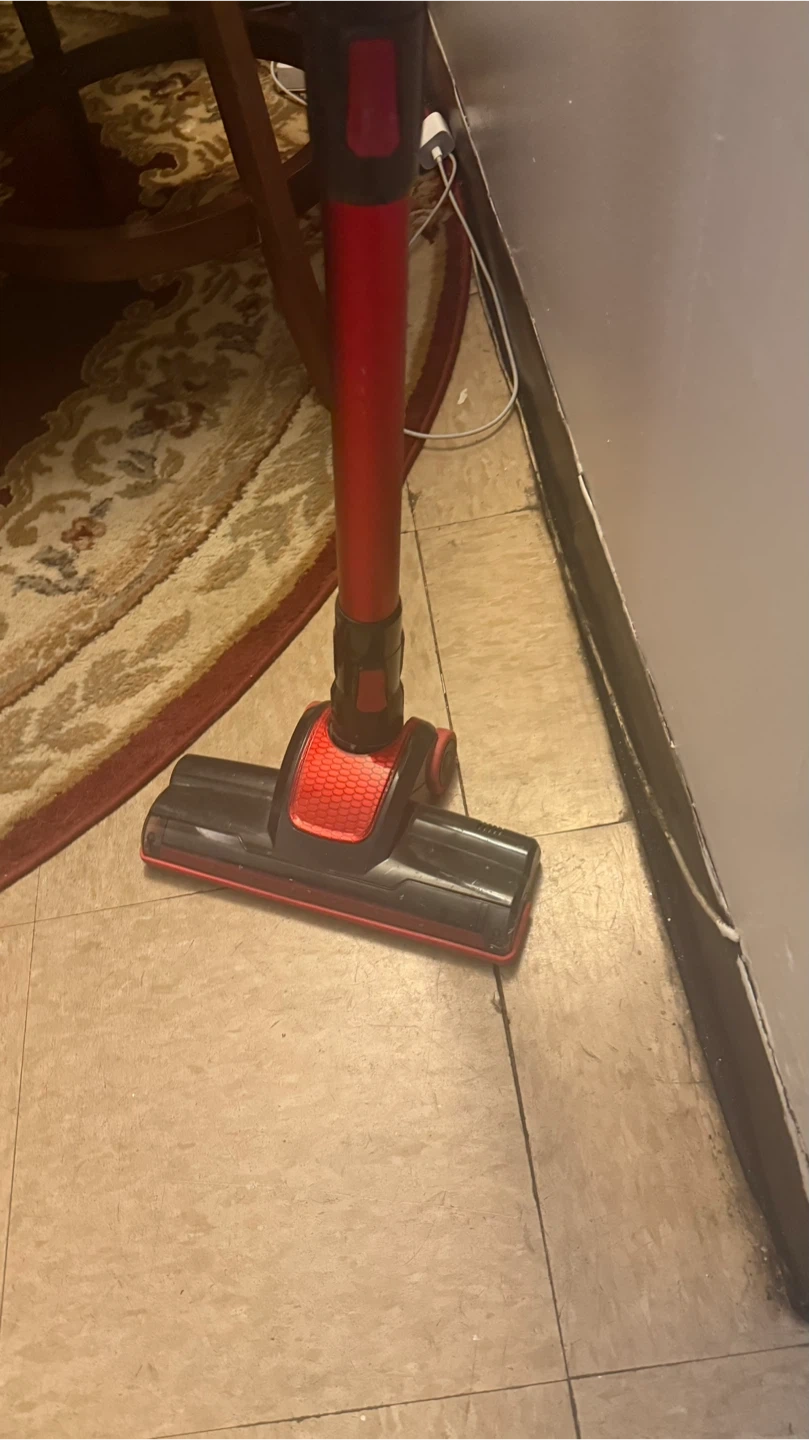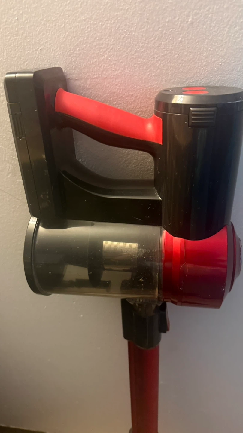 Selling a used cordless vacuum in red and black. It's in good working condition and ready to help keep your space clean!