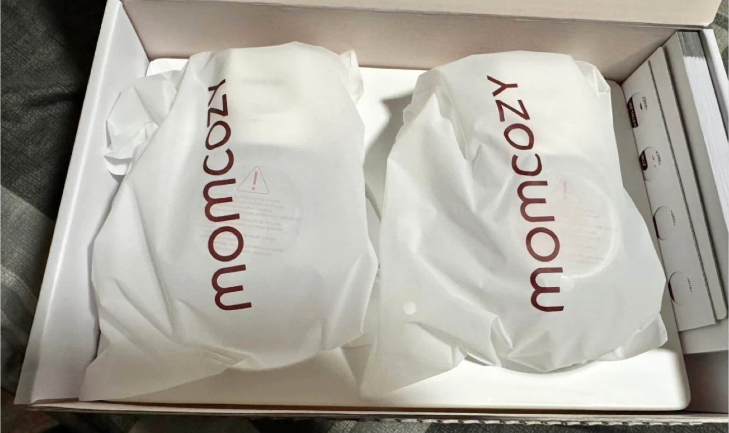 Momcozy double electric breast pump in original box. Includes all original components and accessories. This pump is designed for efficient and comfortable milk expression.