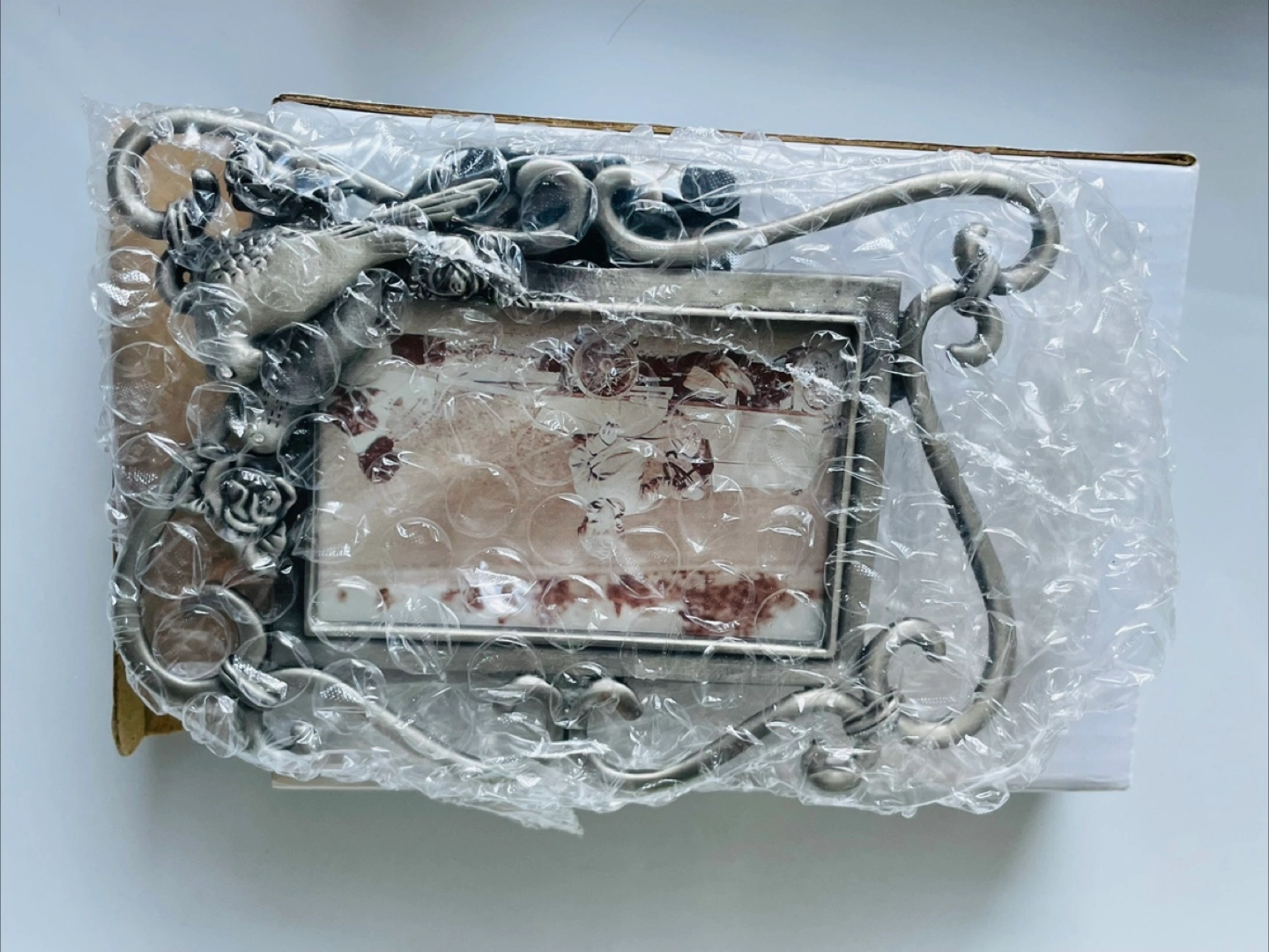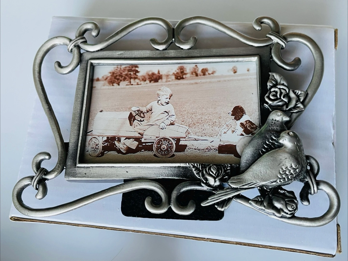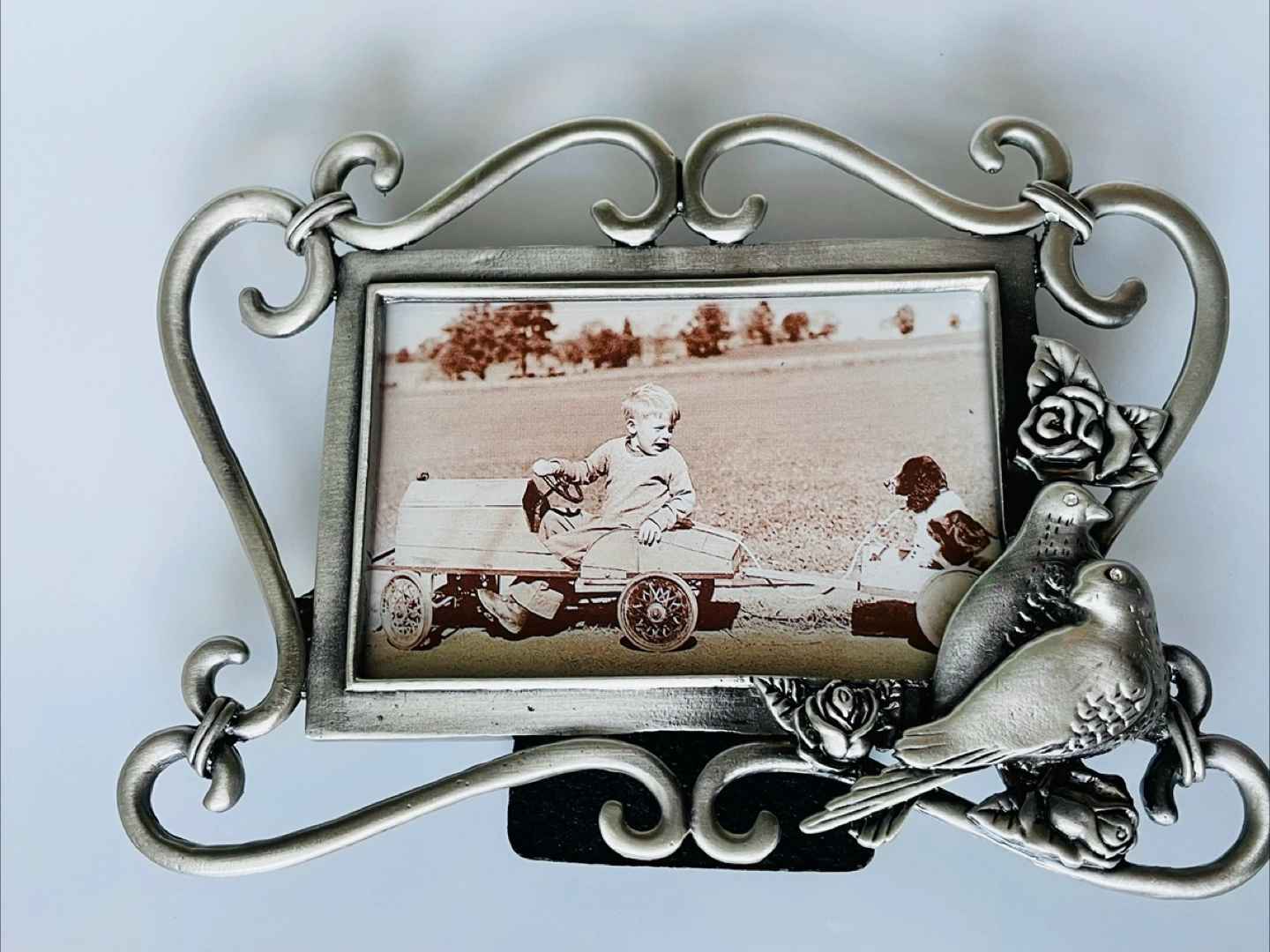 Vintage Pewter Metal Picture Frames With Pretty Dove Design